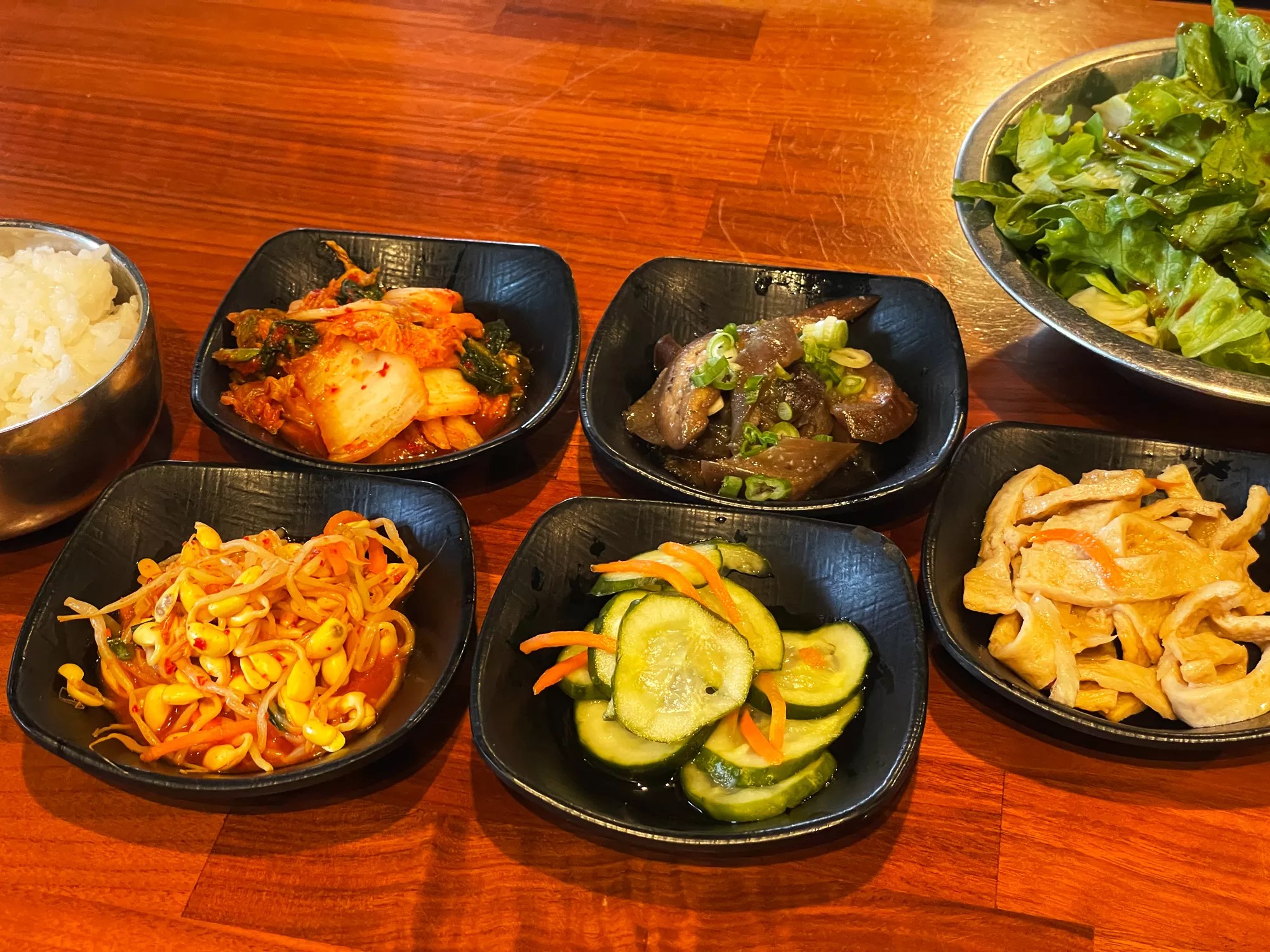 The veteran move here is to combine the meat with any of the six sides for a build-your-own-bite situation that is every bit as zesty and clean as it is greasy and rich. Your side options are kimchi, eggplant, mung bean sprouts, pickled cucumbers and what we’re sure are marinated strips of tofu. To our surprise, the eggplant was our favorite and did not make it to the takeaway box.