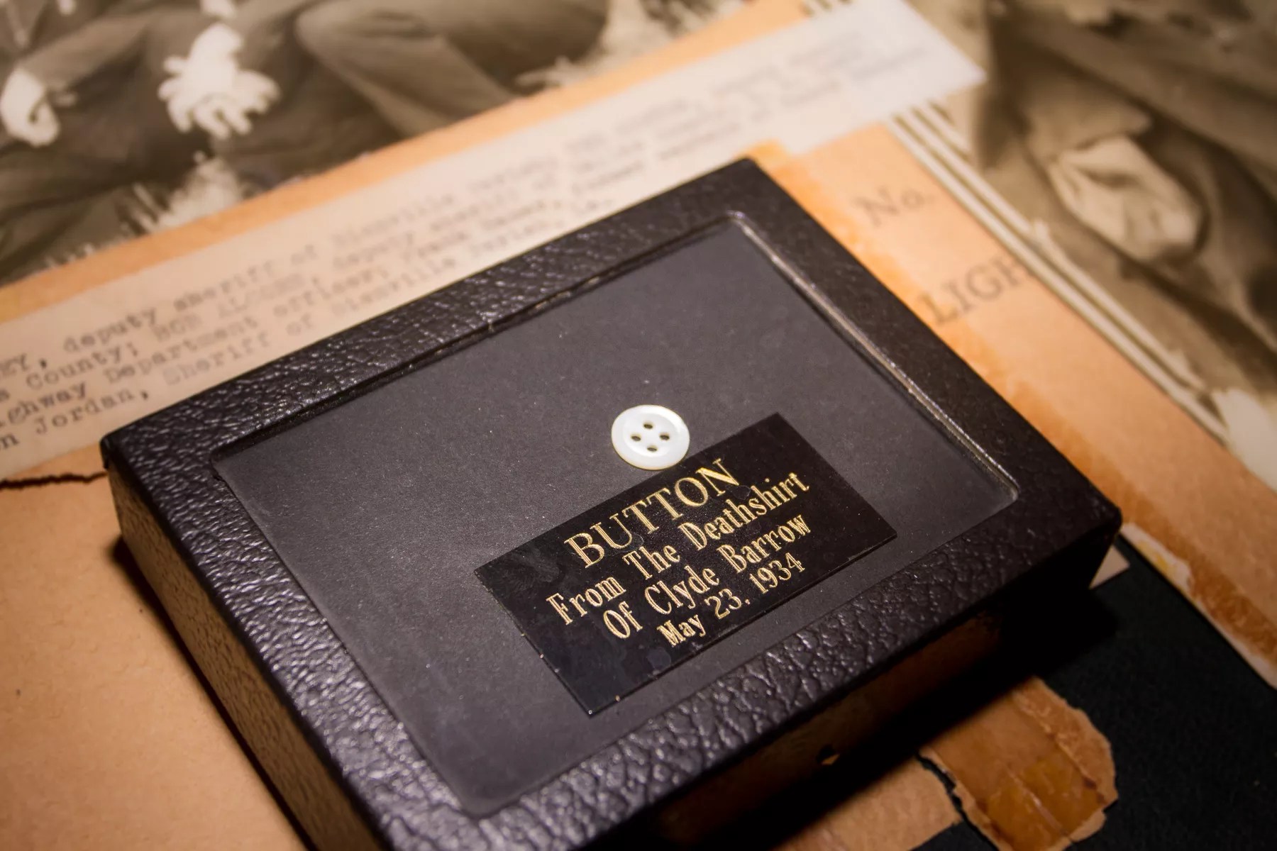 One of the most unusual pieces going to auction this June is this single button taken from the bloodstained and bullet riddled death shirt of Clyde. The shirt itself was purchased from Clyde’s sister Marie by local collector Charles Herd and his brother for $35,000 after a chance encounter at a book signing. “I talked to different dealers and auction houses and they all told me the same thing, ‘You paid too much for this,'” Herd said. The experts were wrong, however, as the shirt was sold at auction for $85,000 in 1997. Herd kept the button before the shirt was sold, and though this single button is unlikely to bring in anywhere near as much as the shirt it came from, just about anything lifted off the bodies of Bonnie and Clyde seems to have value to someone. “The police did not say stop or halt, they just blew them away. They were like magpies going through all of that material in the trunk and taking things,” Herd says. “They all made off with their mementos.”
