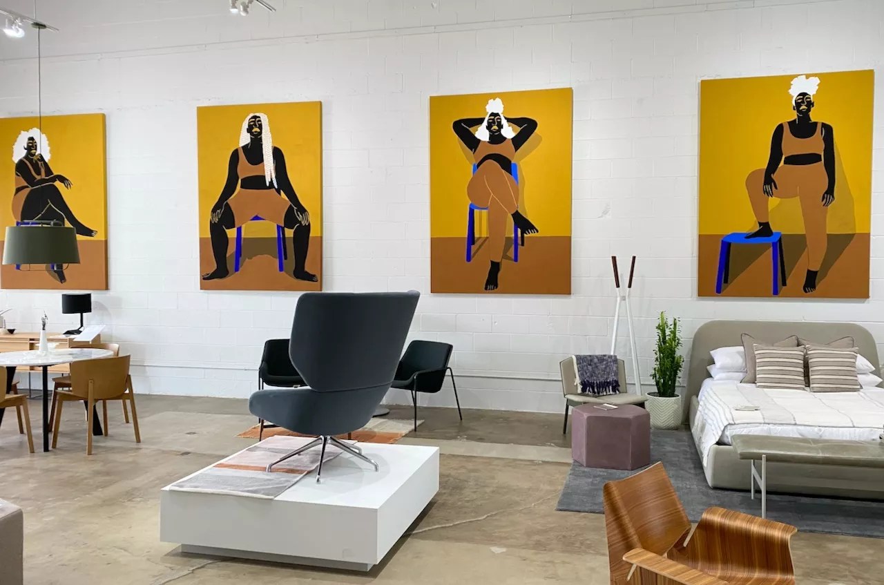 There’s a strong, beautiful energy inside the walls of the Design District’s showroom and gallery store {neighborhood}. After moving into this space from their original spot in Bishop Arts District, and a low-key 2020, the owners of {neighborhood} will host art shows throughout the year. The first offers works from six local female artists honoring Black History Month with a show titled Tellin’ Our Stories, a reference to a Stacey Abrams quote.