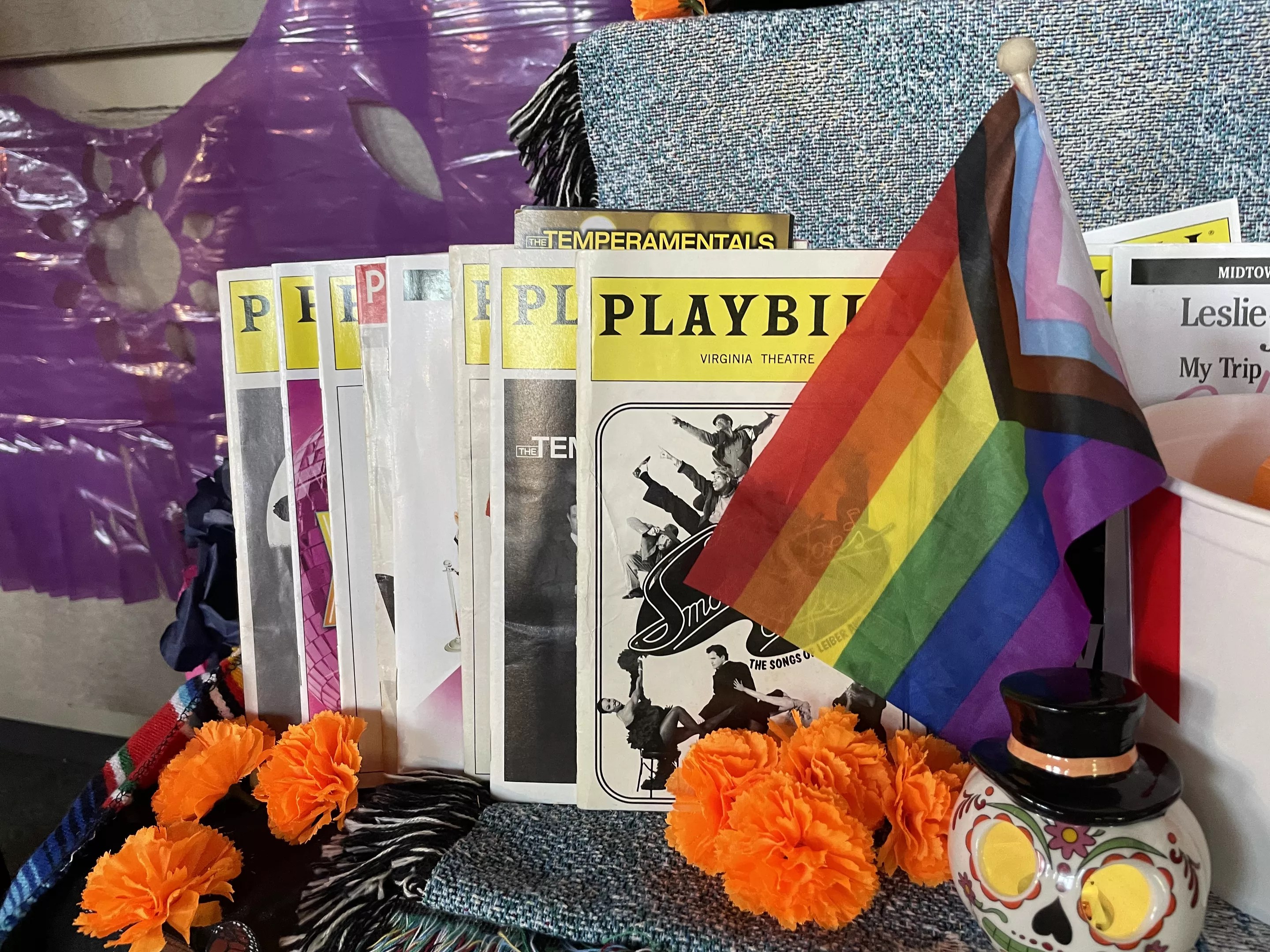 The Mexican offering and memorial at the fair displays many items Tafalla cherished: Playbills of his favorite Broadway shows, photos of his loved ones, a diet Coke, a bucket of chicken and a Bud Light, ready for his spirit to consume.
