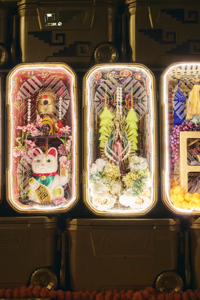 “I thought it was such an interesting object to work with because it means the complete opposite to most people,” he tells us. “They look at a cooler, and they think about tailgating, they think about the Fourth of July, they think about barbecues. It means that you’ve made it and they’re used for leisurely things. But for immigrants and people who just got here, it’s actually a tool for survival.”