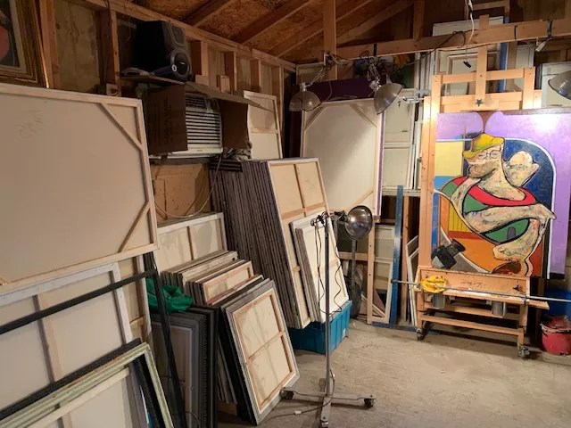 His studio is lined with his oil paintings both wet and dry. Most of them are turned to face the walls when finished. Others remain in various states of completion on a single easel. Sanders’ work is often classified as abstract expressionist and he cites Francis Bacon and Pablo Picasso as some of his favorite artists. He seems almost as prolific as Picasso, judging by the amount of work in his studio, where Sanders sticks to his daily routine as a means to success.