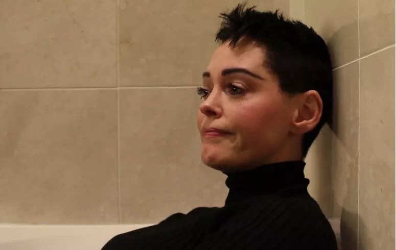 Citizen Rose is strongest at the start, when it juxtaposes McGowan’s present-day anguish with the media coverage of her as a young starlet in the late 1990s and early 2000s. Young Rose obediently perches on late-night talk show couches, poses on the red carpet and peers out from the covers of magazines in skin-tight dresses, her long, dark hair framing her dimpled chin. The images are superimposed on top of each other, a hazy collage of manufactured sexuality; it’s a period she characterizes as “the selling of me as a bad girl.” What the Hollywood-media complex peddled as a come-hither, brooding gaze, McGowan reveals, is the “vacant” stare of a woman completely detached from her own self.