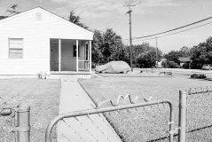 Twenty-five black-and-white photos make up this exhibition, given by photographer Steve Dennie. Dennie’s a street photographer but not a normal one. Instead of snapping people interacting in urban locations, he snaps the mundane locations he frequents. He likes the absence of humans in his work because it heightens that “gotcha” response he’s looking for.