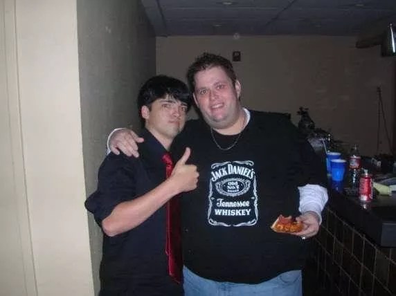 Comedian Dan Danzy (left) met Ralphie May at a comedy club in Beaumont. Danzy says he asked May if he wanted to put down his slice of pizza before taking the picture, but May told him, “Why would I put pizza down? It’s delicious.”