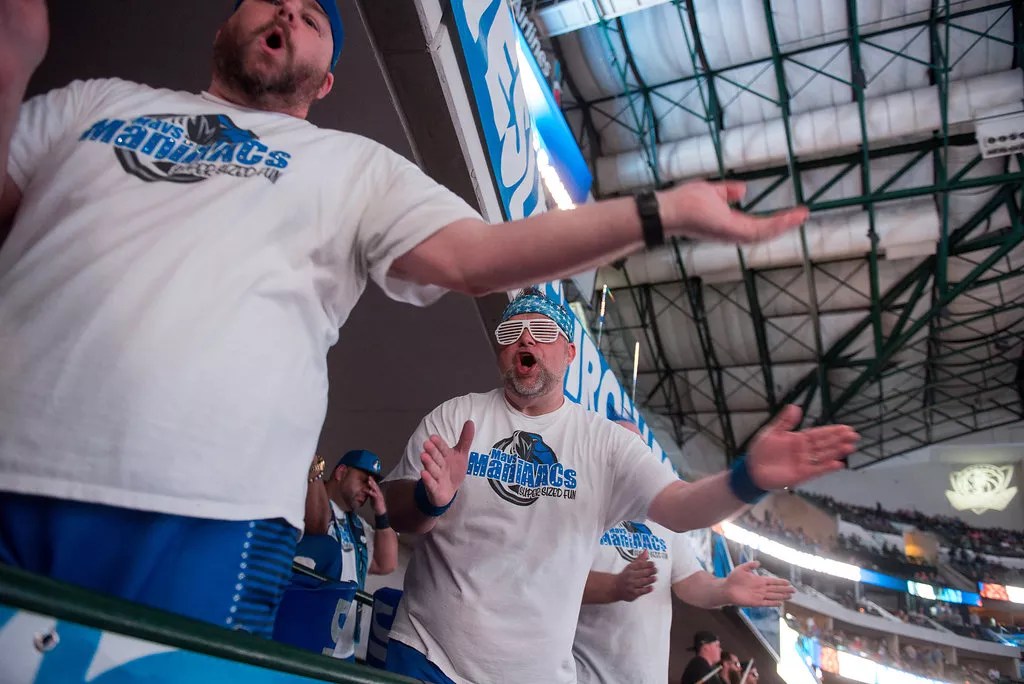 “We left just thinking it was all over, and we got a phone call and letters asking if we would consider coming back for a season because it was such a hit,” Maiden says about the team’s beginnings. “We were all just elated, and from there, we just ran with it. We decided let’s put crystals on these shirts. Let’s come up with chants and be the rowdiest college atmosphere group you’ll ever see at a professional game. Let’s make the Mavericks think they can’t live without us.”