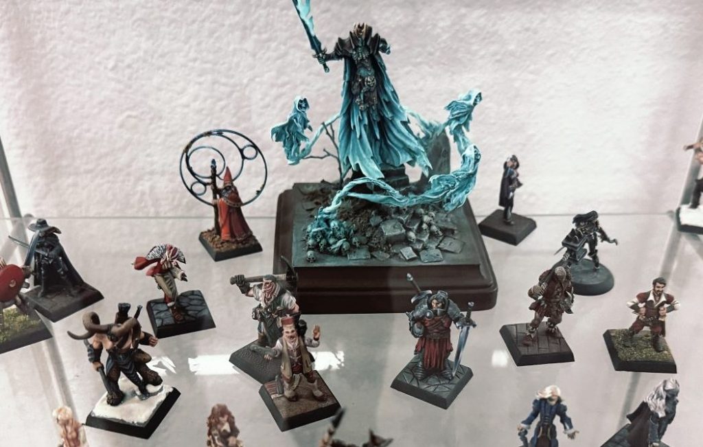 An expansive retail display highlights the store’s focus on high-quality, crafted figures for tabletop enthusiasts.