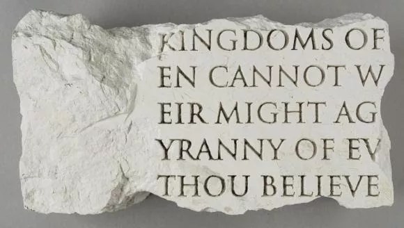OK, this is fun. For his installation Trace, Texas’ native son Darryl Lauster made a bunch of marble tablets and carved phrases in them using a Founding Fathers-esque font that would make Lady Liberty drool. The phrases themselves don’t make much sense. They seem to have fallen from an ancient building, the artist thinks, “alluding to the possibility of an empire in its potential decline.” In conjunction, Less the Remainder, another installation by Lauster, will be on view at Barry Whistler Gallery April 1 through May 13.
