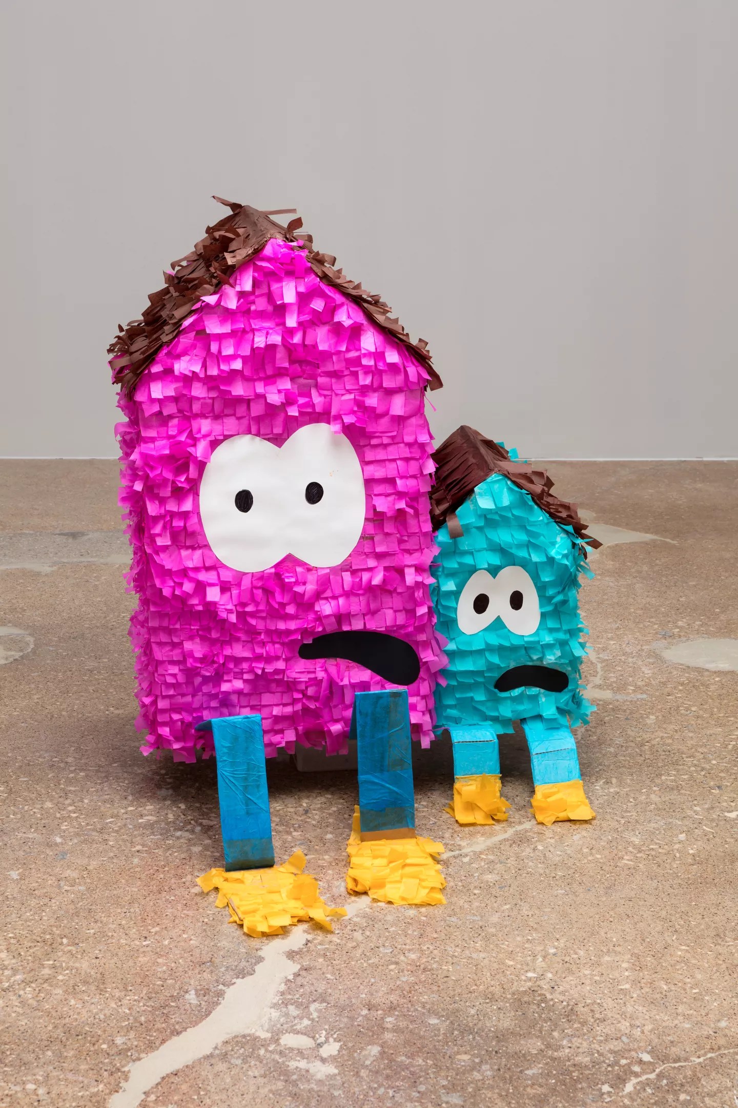 The mission of Casitas Tristés is to communicate with the residents of Oak Cliff in a visual vernacular they identify with. He wants to show them they have a voice and that they are not forgotten while also challenging existing power structures with subversive imagery. The piñatas’ bright colors and joyful connotations clash meaningfully with their sad expressions and dilapidated surroundings.