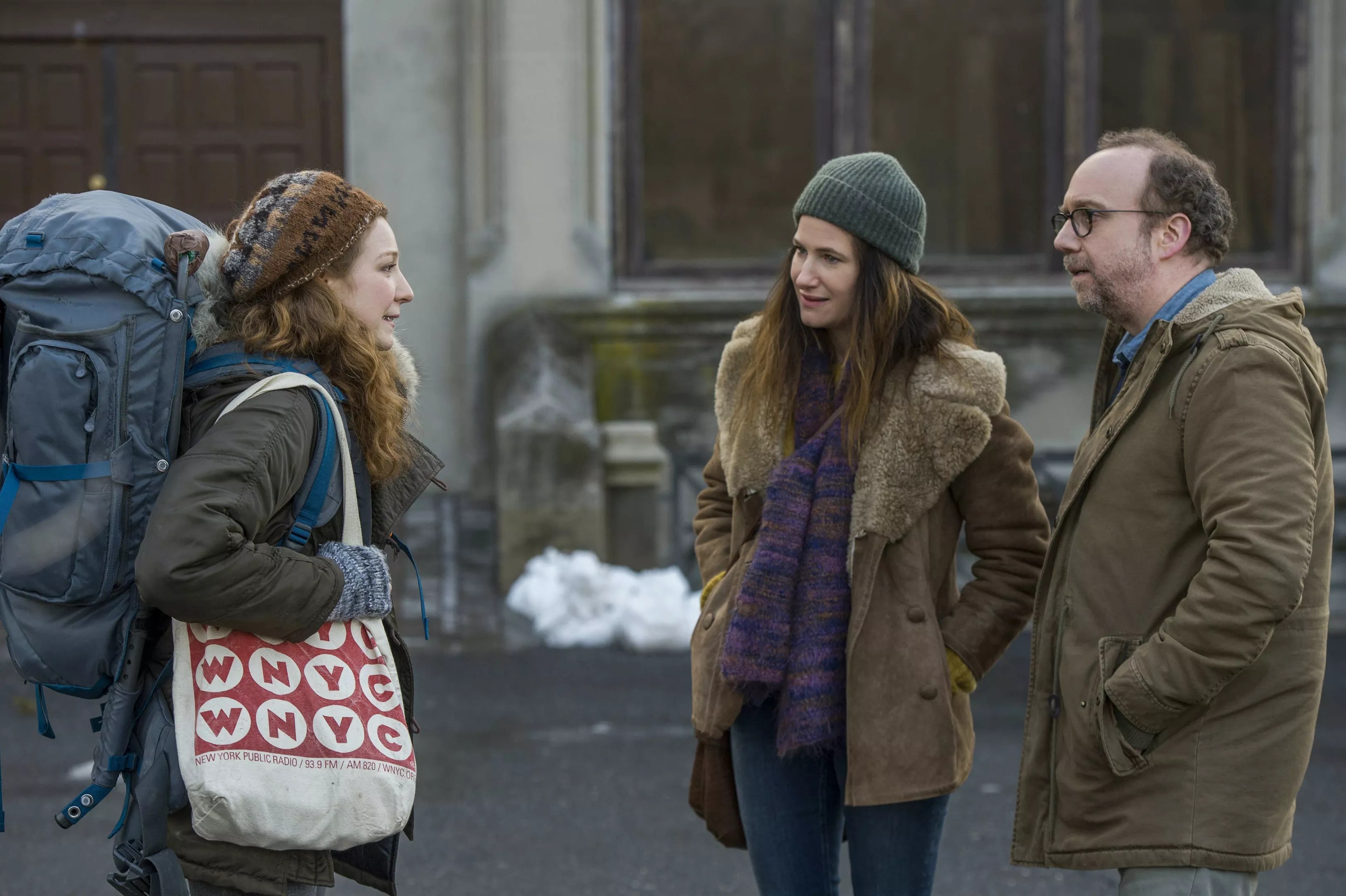 In the Netflix comedy Private Life, Kathryn Hahn (middle) and Paul Giamatti (right) play a couple so desperate to conceive a child that they consider asking beaming stepniece Sadie (Kayli Carter) to donate an egg.