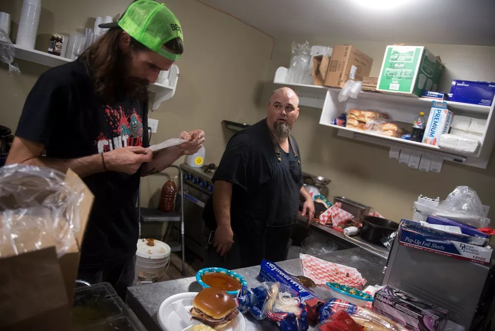 Vandiford didn’t order any barbecue on his second trip to The Gas Station. He walked behind the shop and waited for the movie to start with the rest of the convention attendees, who gathered around picnic tables and on the front porch of a cabin. He didn’t plan to attend the VIP party at the Hampton Inn because he was heading home to Austin to take over doggie duties from his wife, who needed a break.