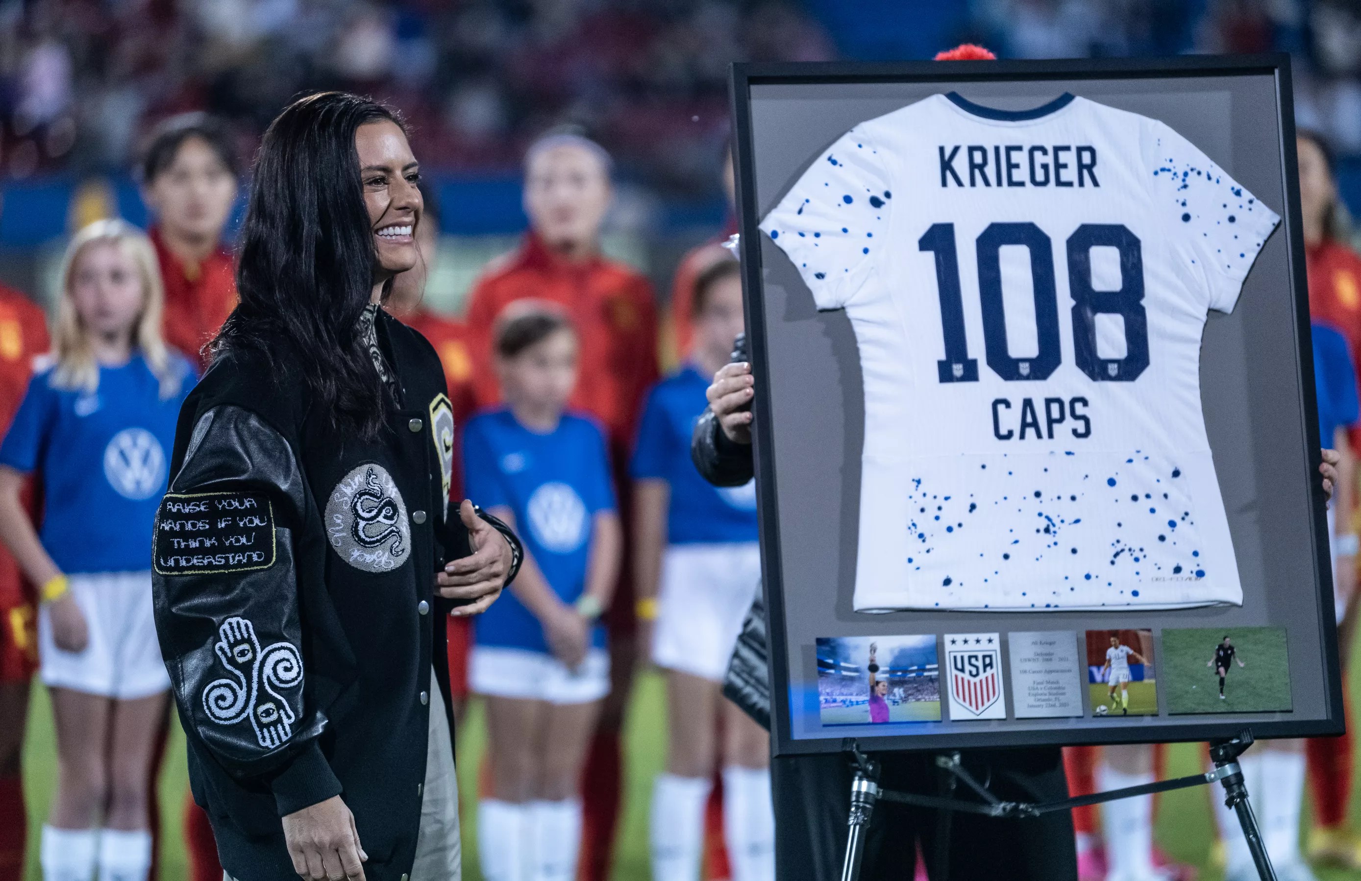 Two-time Women’s World Cup Champion Ali Krieger was honored before the match.