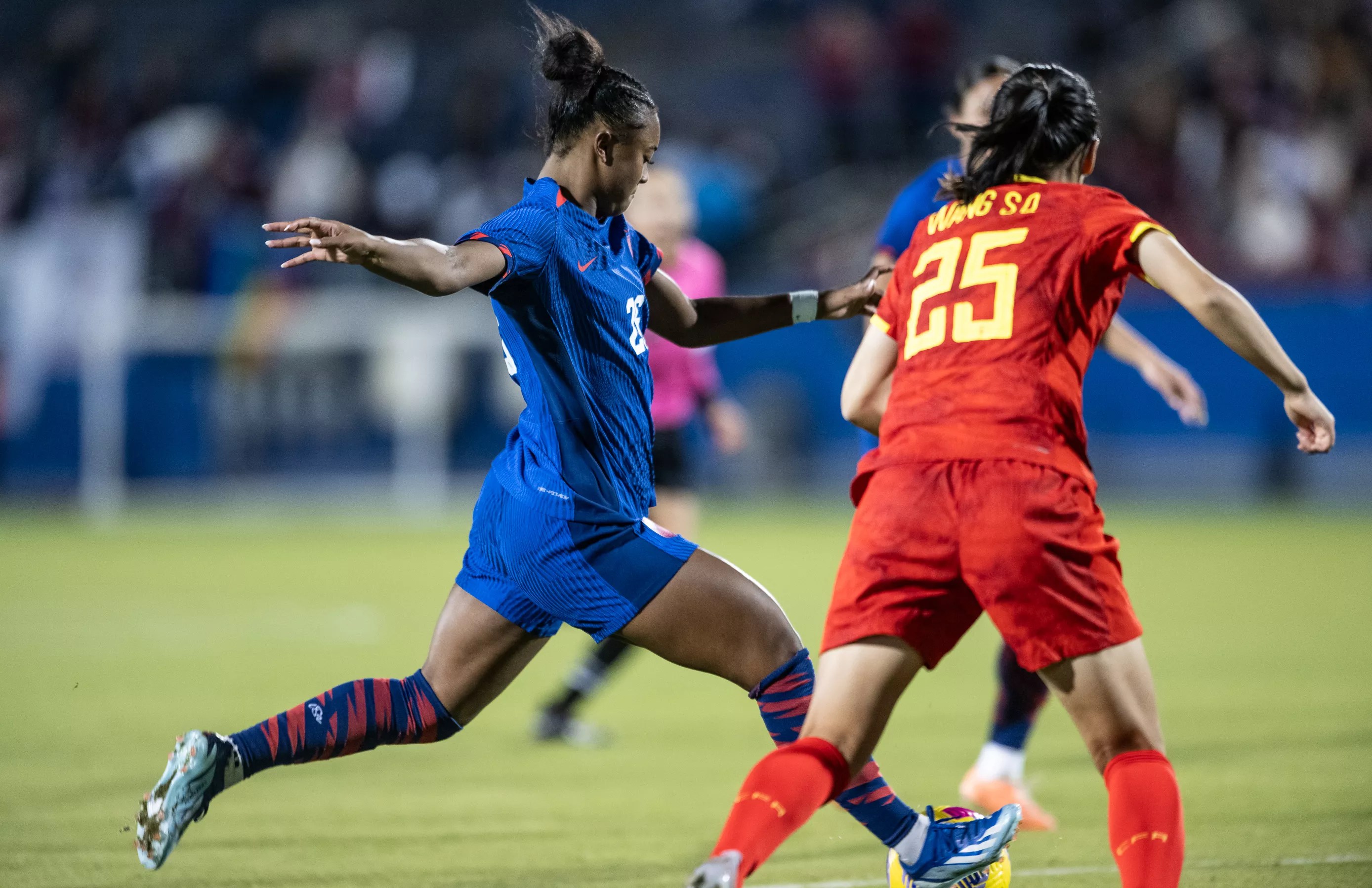 Jaedyn Shaw, in her first match on the National Team, scored the winning goal late in the second half.