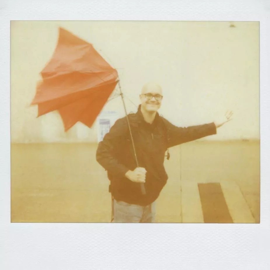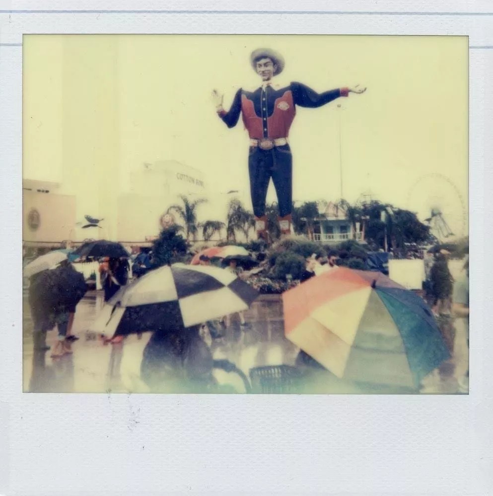 A Spectra Polaroid of Justin Goode with the wind-broken umbrella at IFS’s first rain-or-shine #PolaWalk at the State Fair of Texas.