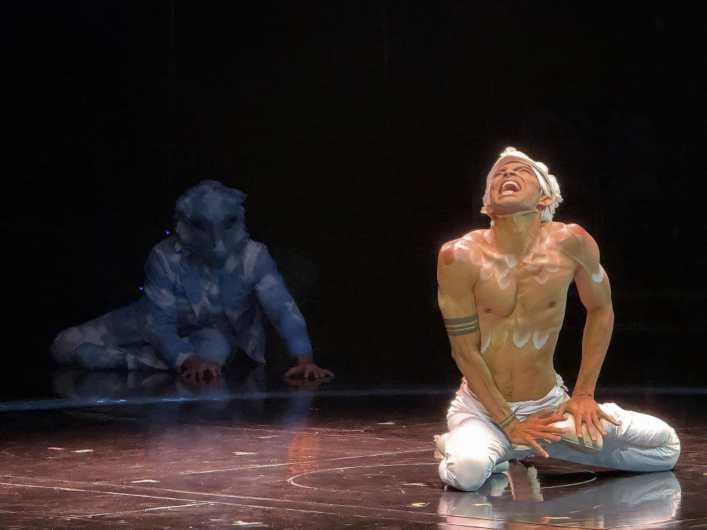 Rather than relying on canned backing tracks, Echo thrives on a soaring live score, and it’s the only show in the company’s repertoire that features instrumentalists. The vocalists and musicians blend into the eccentric world, adorned in dark, animalistic headpieces—complete with ram horns and bird features. The music swells with epic grandeur, while the vocals feature haunting melodies that elevate the emotion of every scene.