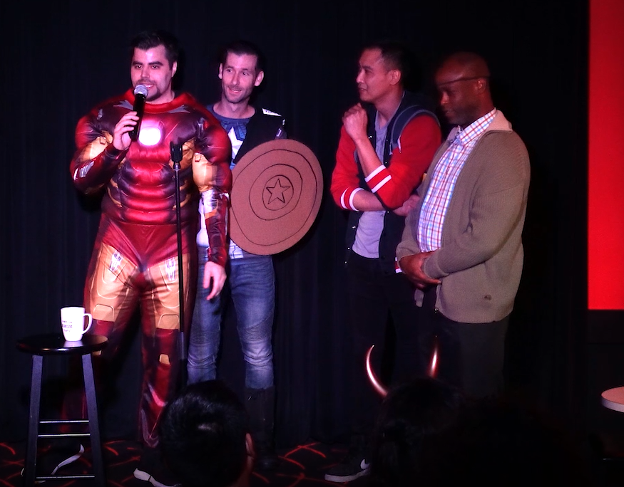 The show features nine comedians including Stramiello as the billionaire engineering genius Tony Stark/Iron Man, Geoffrey Egglestein as the mischievous Loki, Liem Smith as the spiritual martial arts master Shang Chi, Chris Hopkins as Avengers’ founder Nick Fury, Tyson Faifer as the super soldier Captain America, Monna as the Scarlet Witch, Jorge Cortez as Wolverine and Joey Johnson as the mighty Thor.