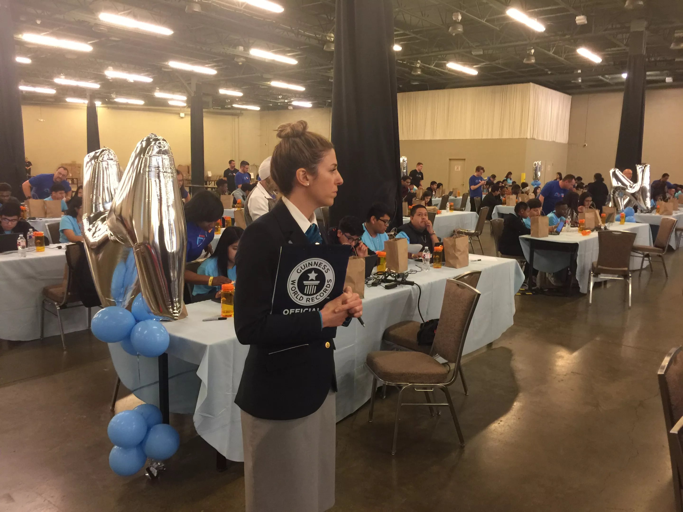 A “Basic TrAINing” bot camp of 893 area high school students and 200 volunteer mentors Wednesday at the Hilton Anatole, set up by Capitol One and the computer science student organization, Major League Hacking, created a new Guinness world record for the largest AI programming lesson.