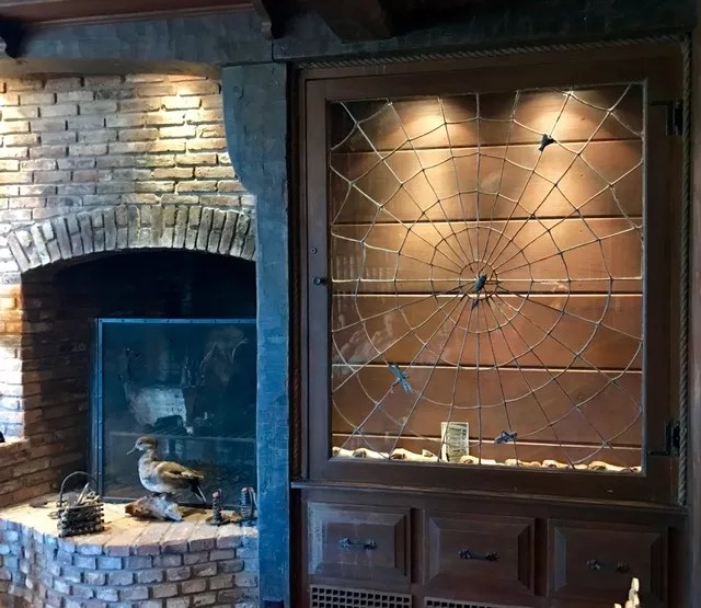 The spider-web design on this gun cabinet is a signature of Dilbeck’s.