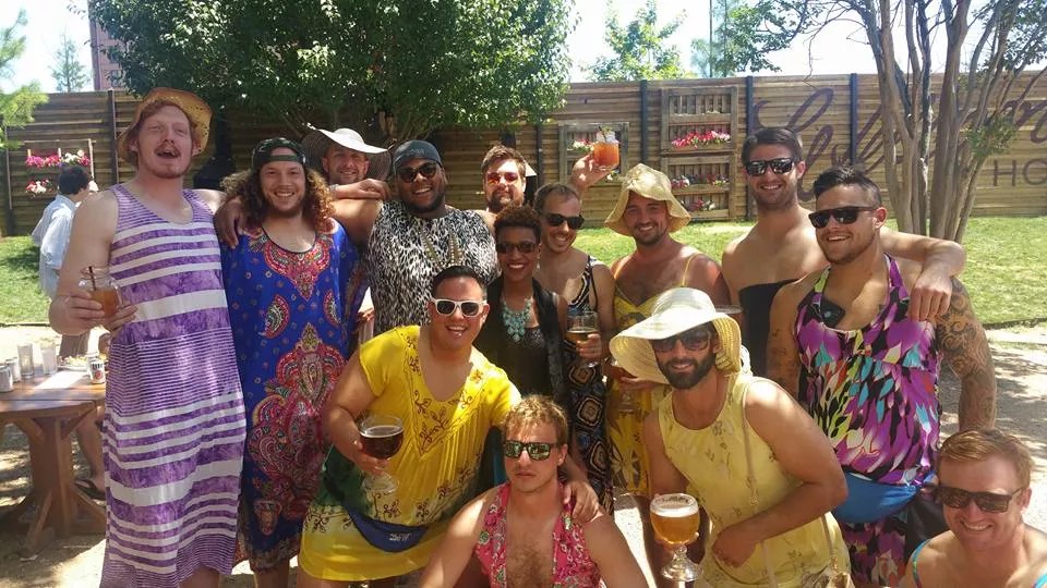 Nearly half of a 130-strong brotherhood is downing celebratory beers in the backyard of The Rustic bar in Uptown. More than a dozen countries are represented in this mix of teammates. Everyone is clad in women’s garments.