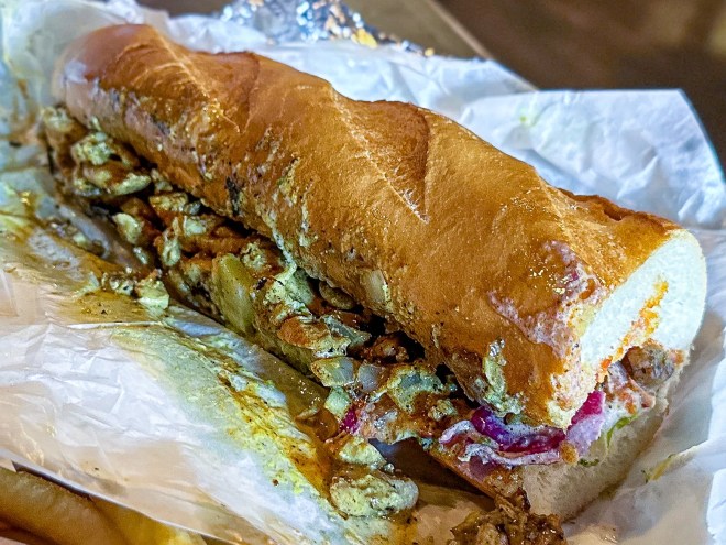 We finally succeed in tracking down the Portillo’s Beef Bus and try some of their dogs and beef sandwiches while we wait for the official opening in The Colony in January.