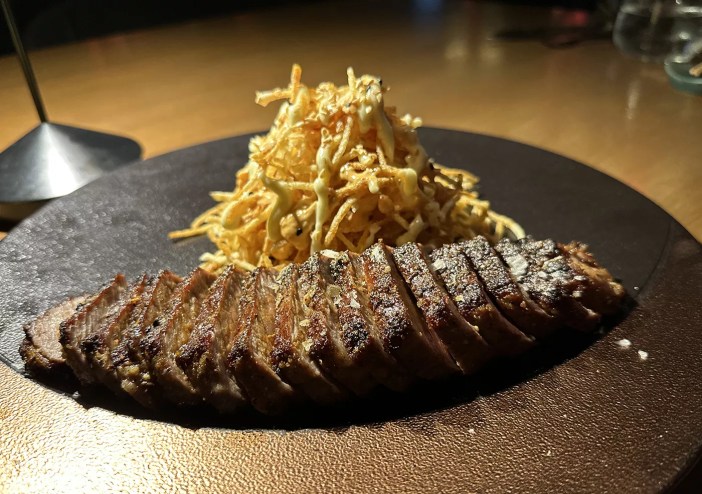 A dry-aged sea bass served in a brown butter dashi is one of the best meals we’ve had this year.