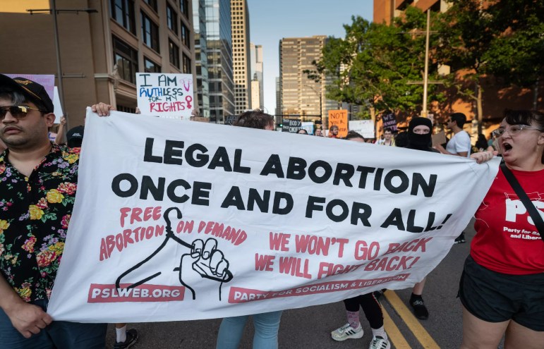 Less than 12 hours from the official announcement that overturned 1973’s landmark decision in Roe v Wade, abortion activists and supporters rallied across the street