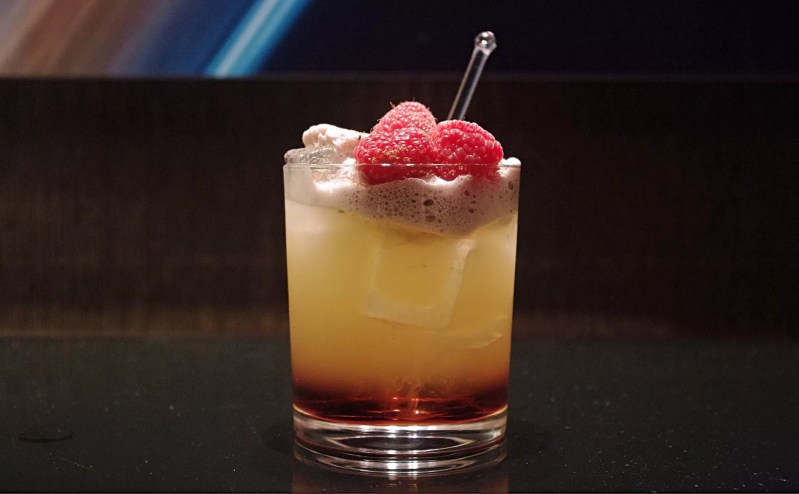 One of Hide’s signatures cocktails, the Upside Down, brings together Aquavit , lemon, pineapple, sherry, nutmeg, and chamomile scotch.