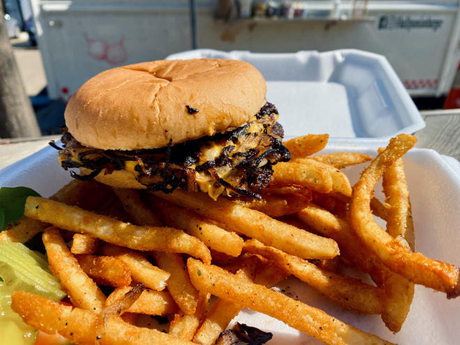 Last week while perusing breweries for things to do over the weekend, Kelly’s Onion Burgers was mentioned on Peticola’s Facebook page.