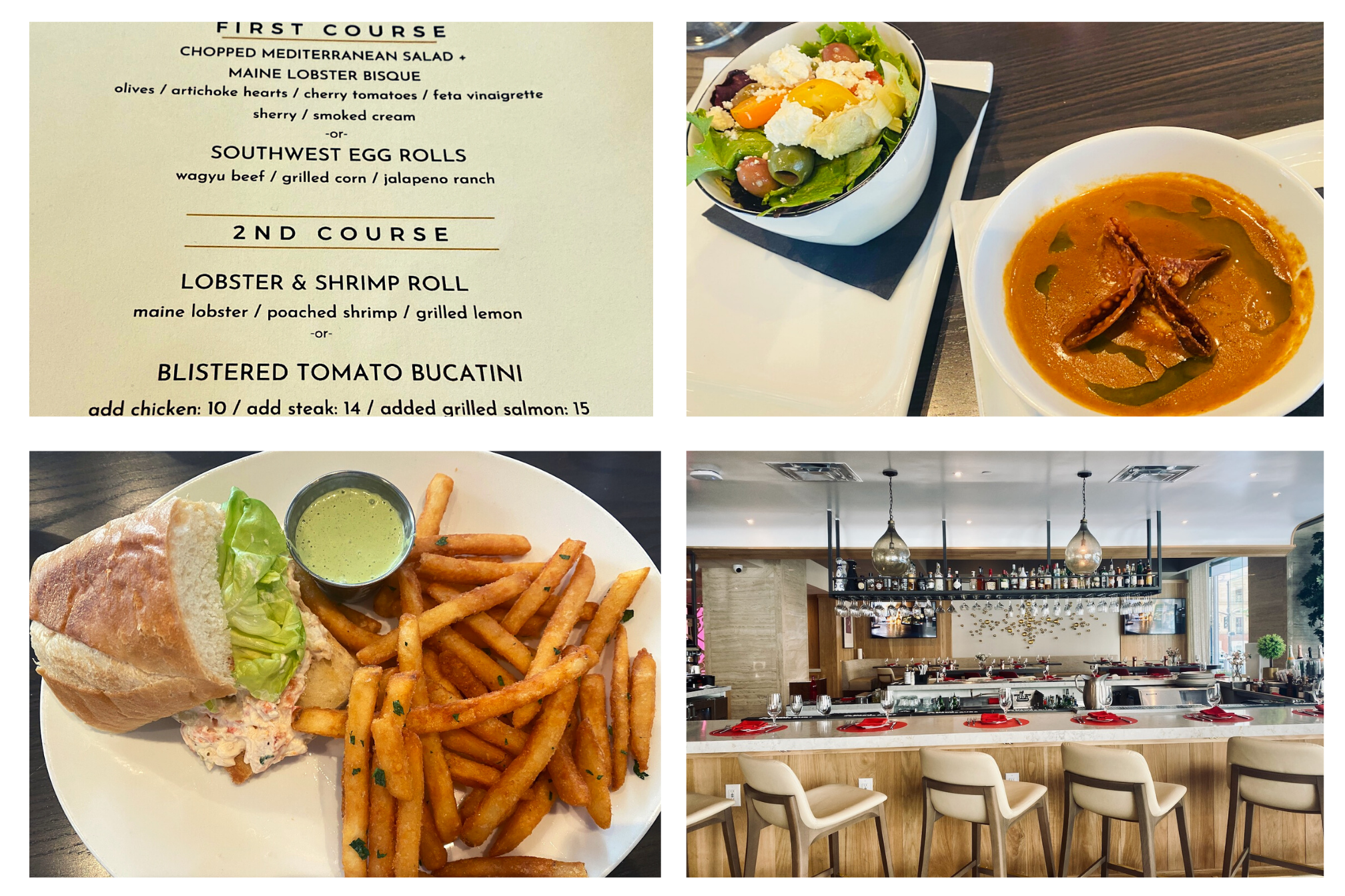 The lobster bisque comes with a crab Rangoon, and a meaty shrimp and lobster roll is a steal at for the entire meal.
