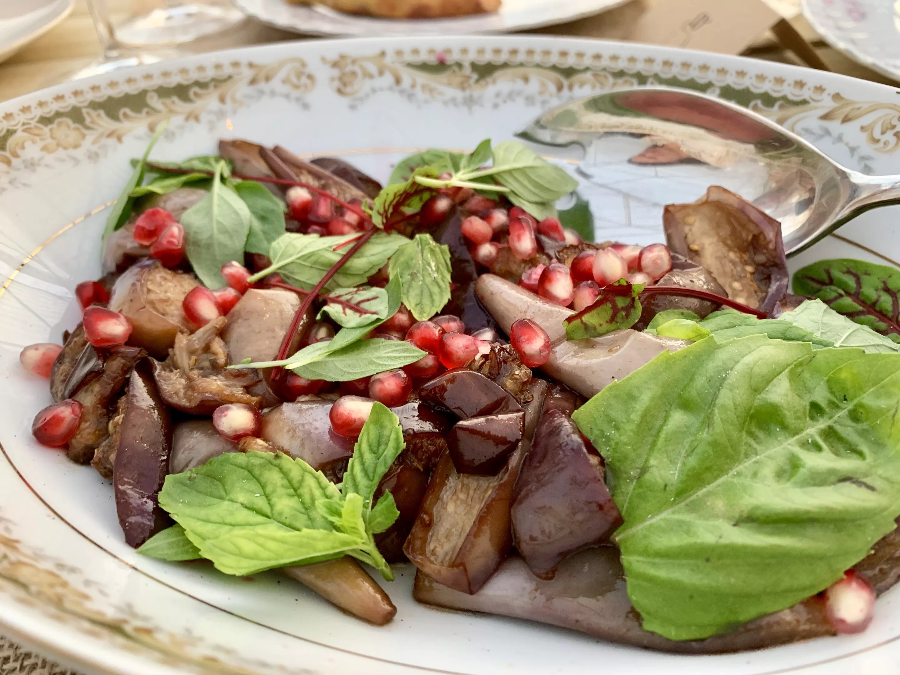 Glazed fire-roasted Comeback Creek Farm fairy tale eggplant with sesame