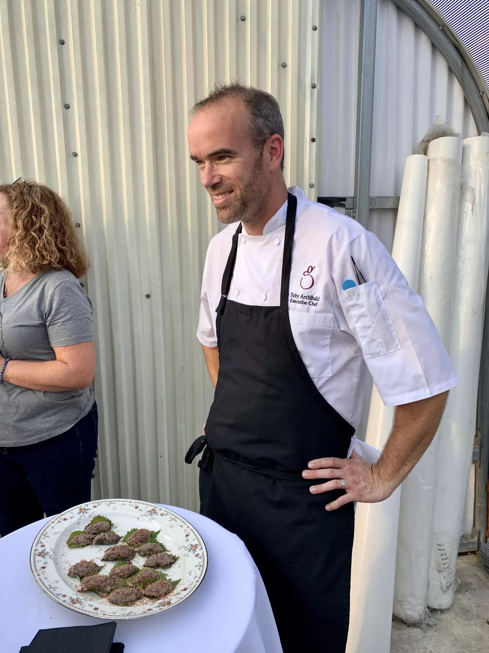 Stone was friendly and charming as he walked us through the farm as we snacked on small bites. The second stop was a lovely beef tartare, where we also got up-close with Georgie’s executive chef, Toby Archibald.