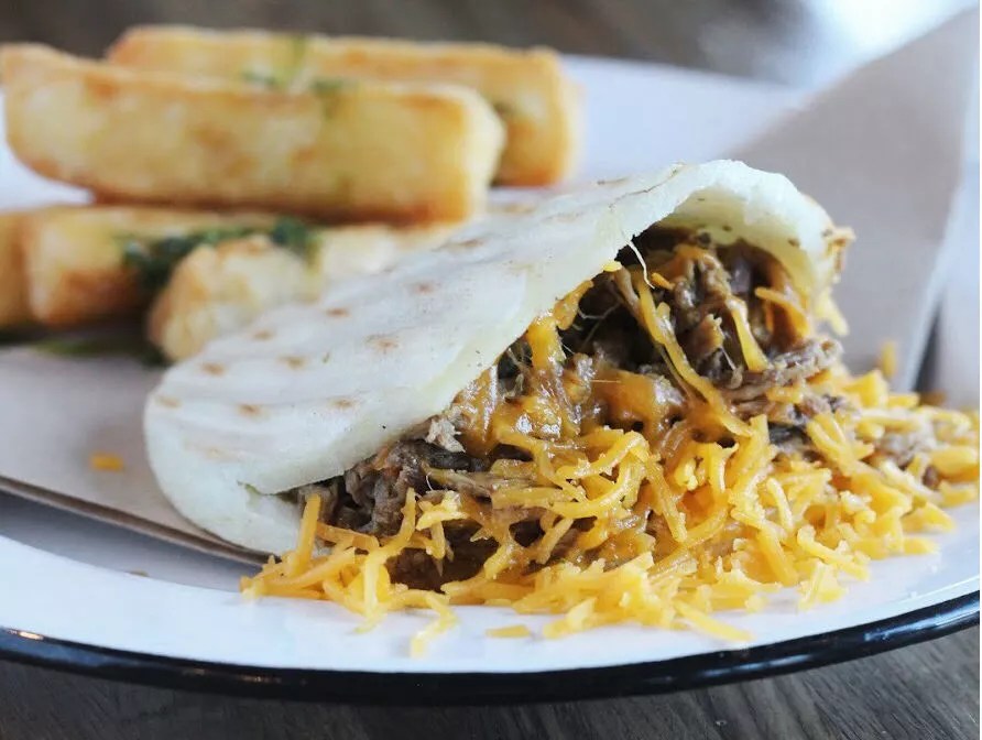 Arepa TX’s arepas are grilled to perfection in a panini press.