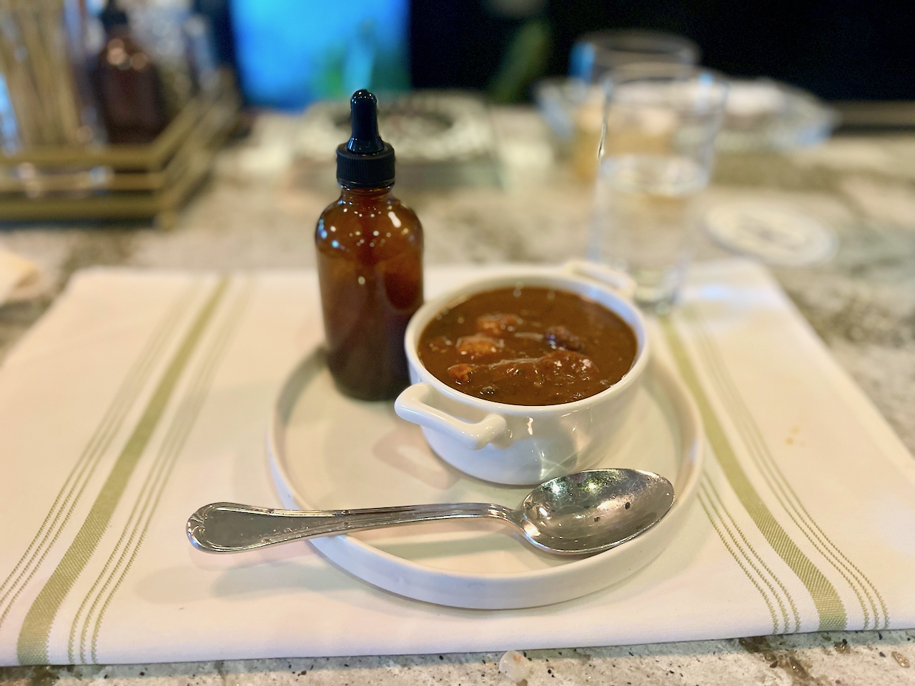 We then tried the Texas gumbo ($8), which is filled with andouille sausage, Gulf shrimp and okra and served with a house-made hot sauce that is fermented for six months – just like a sourdough starter – and is more about flavor than heat. It added a nice, pickled contrast to the gumbo. Ça c’est bon.