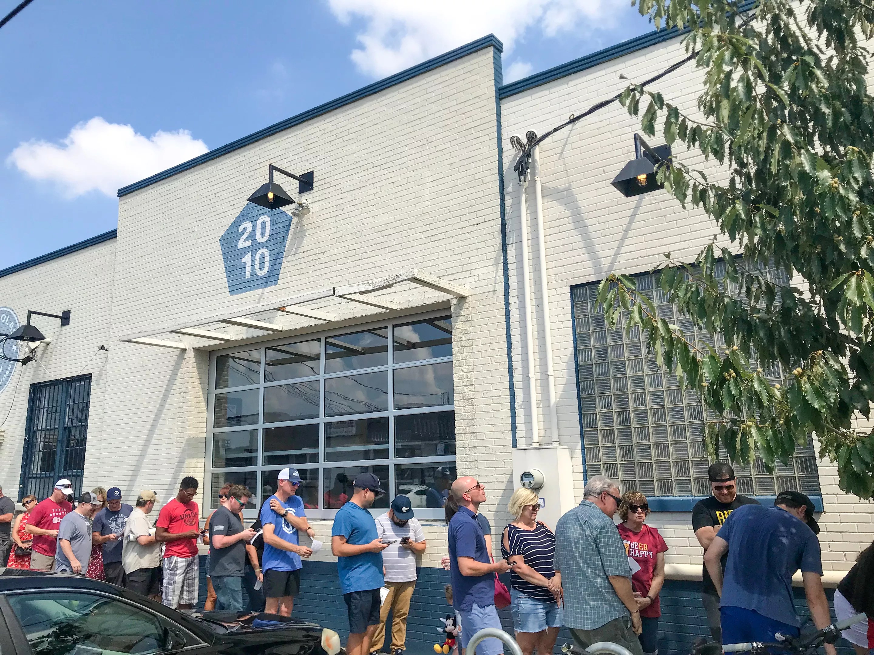 The line stayed steady at Peticolas in the Design District on Sept. 1.