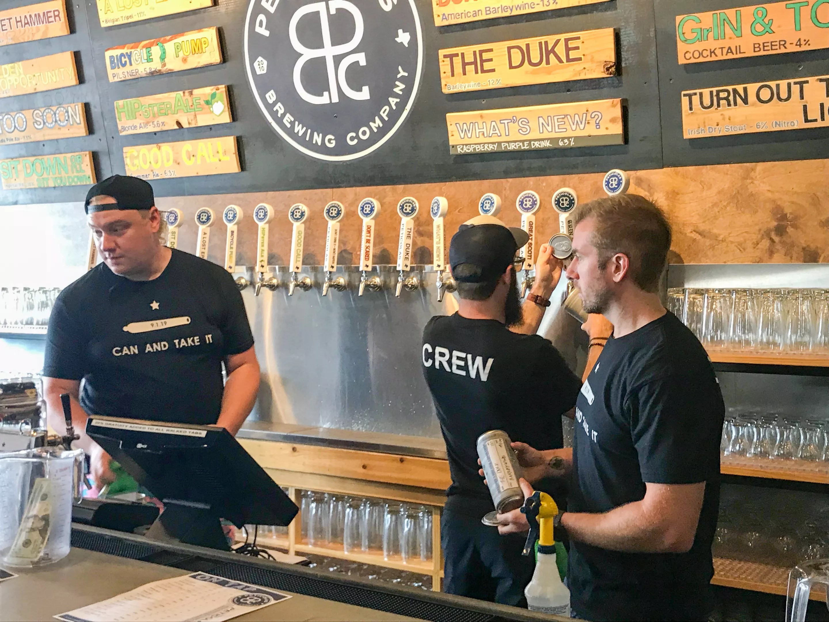 Selling canned beer for the first time ever, Peticolas is again taking a measured, slow-roll approach. A customer can order a 32-ounce crowler of any beer on tap to take from the brewery taproom, but only three of their beers are available in packaged cans right now.