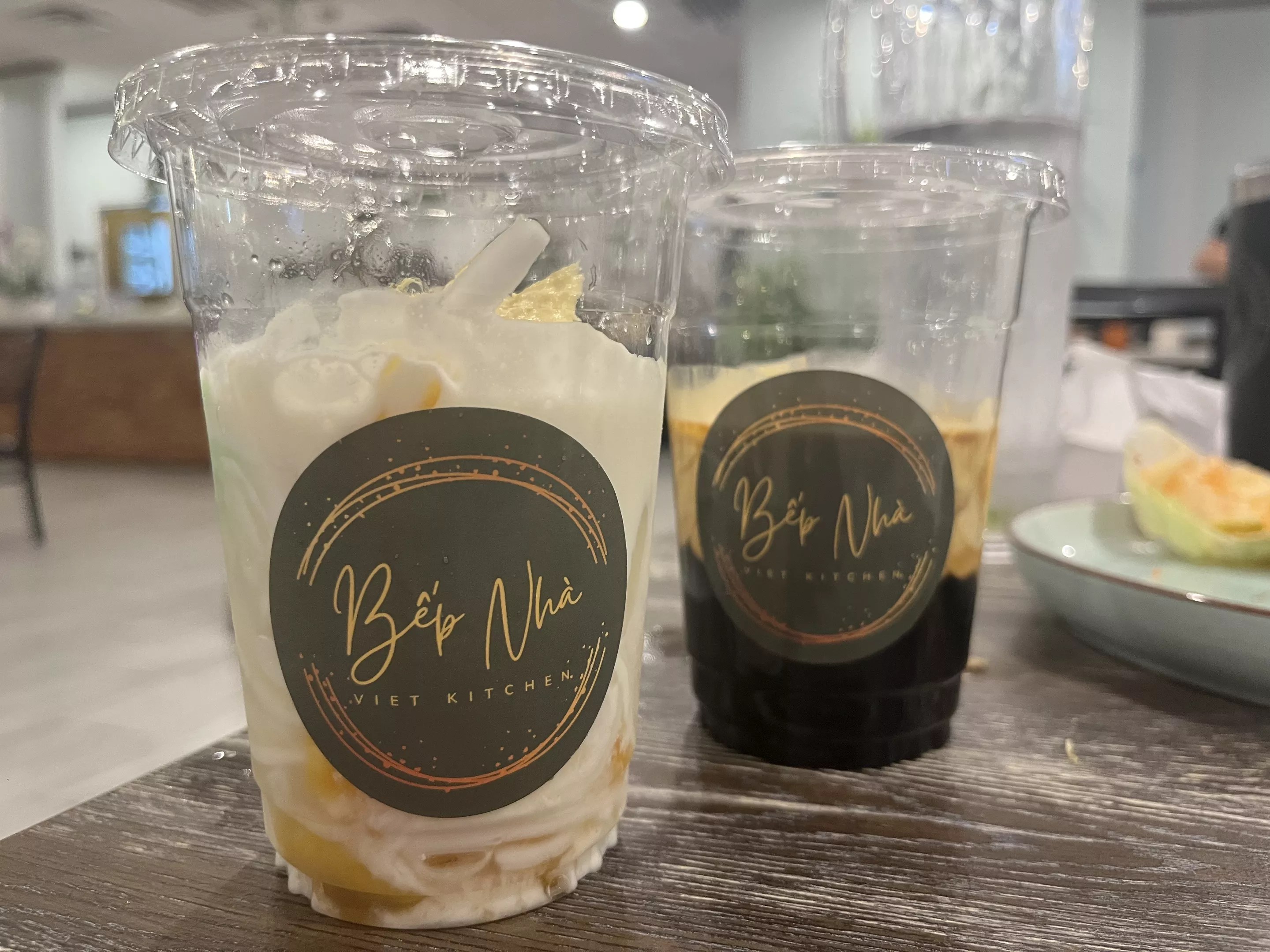 Bep Nha’s drinks come topped with things like egg cream, coconut pudding and exotic durian fruit.