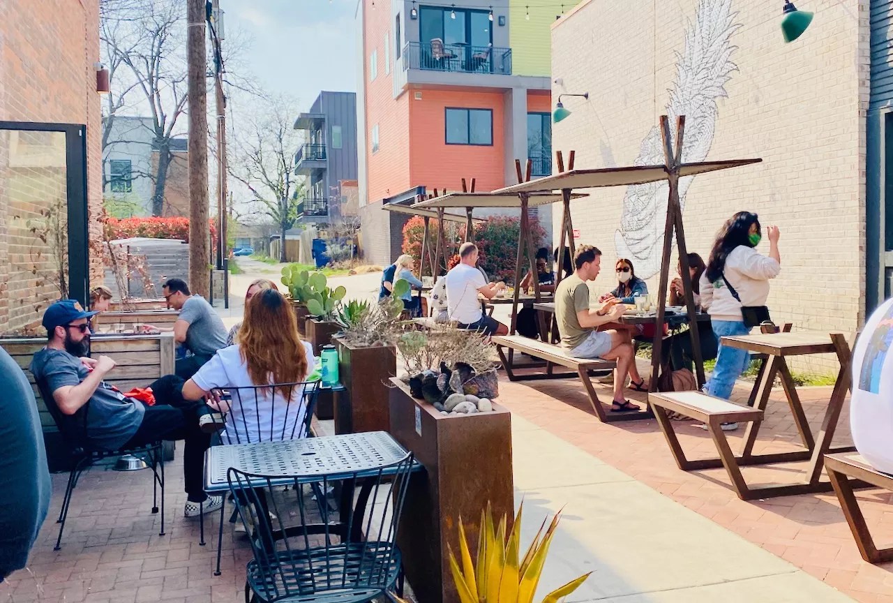 The state of Texas initiated this when they allowed patios to operate at 100% capacity while indoor seating was restricted. Throw down some ground cover, plastic tables and chairs, a few plants and maybe string some lights up and, voila, you’re back in business. All the new beer gardens, patios, parklets are delightful.