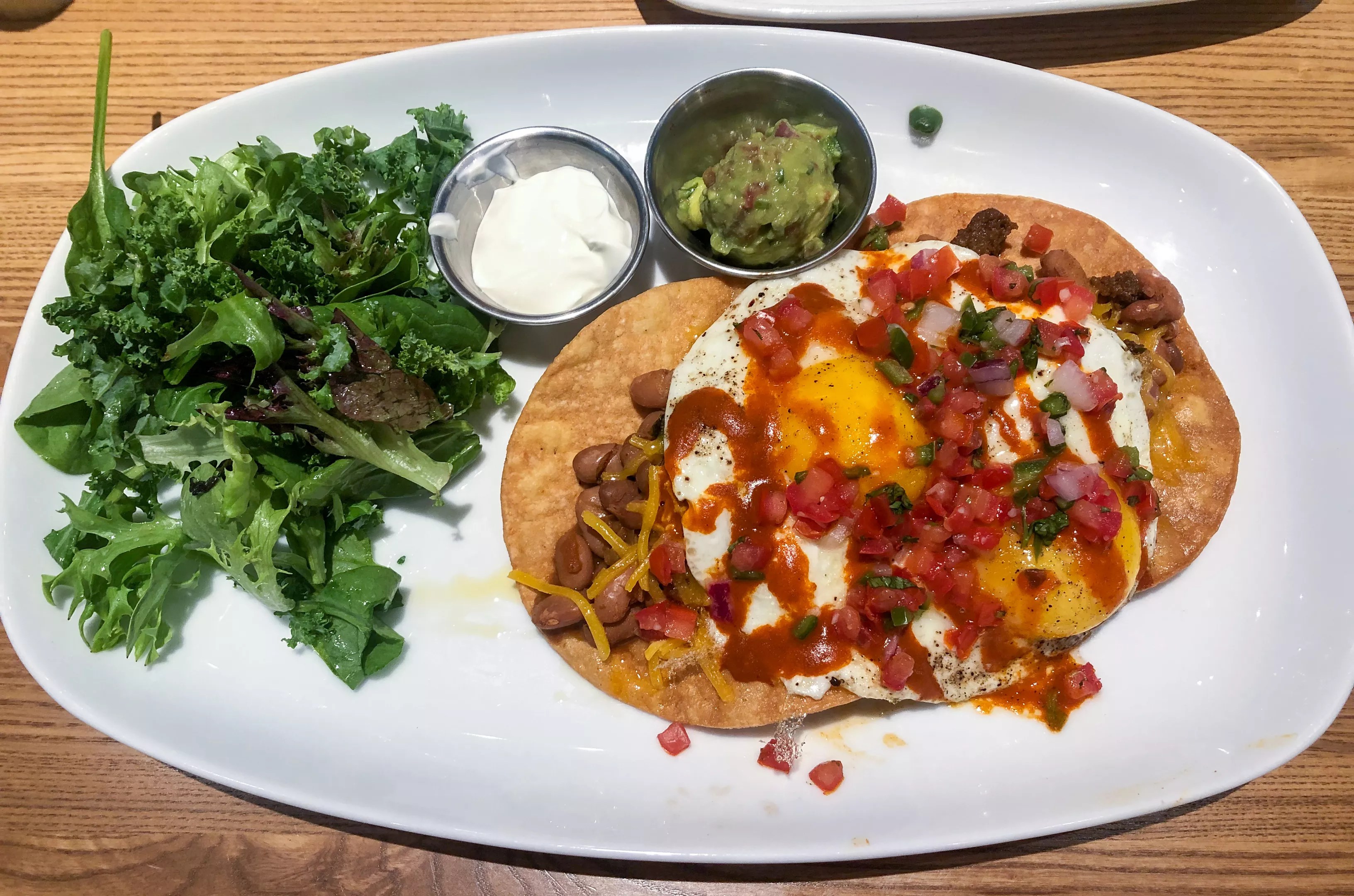 The chicken wings are solid, though ($14). A generous serving comes out tossed in a simple chimichurri, pecorino and some sliced Fresno chiles. The taste is fine, but the texture is perfect: crisp skin gives way to tender meat. Huevos rancheros at Hero Taylor Adams
