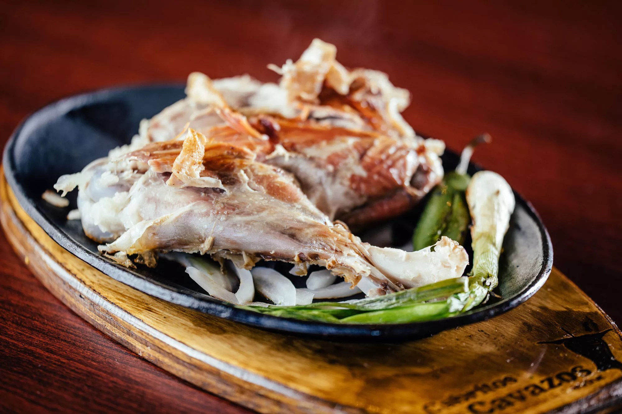 Take a taste of the meat, then poke around the cast-iron skillet to unearth more succulent morsels from near the bone. Some of the skin is not crisp, which makes finding a piece with crunch feel like winning a treasure hunt. It might sound surprising, but squeeze a few drops of fresh lime over a bite. The gentle smoke and citrus are a perfect match.