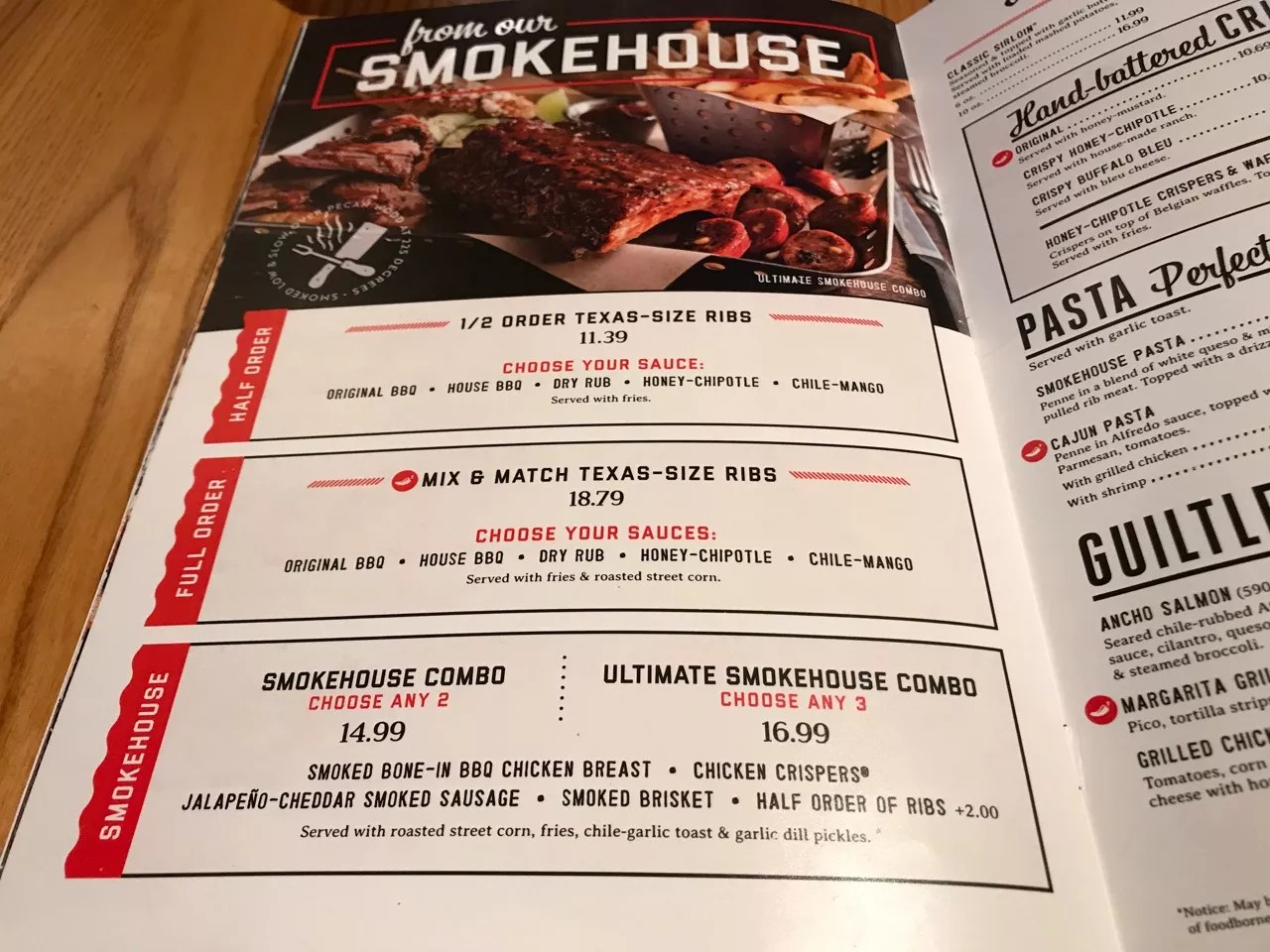 The new Chili’s menu is noticeably thinner, but something new caught our eyes: Chili’s has a smokehouse. We should all be familiar with the ribs that headline the section (if the baritone I want my baby back baby back baby baby back jingle isn’t stuck in your head right now, you’re borderline un-American), but we were surprised to see the option to build your own Smokehouse Combo ($14.99) with two meats and the Ultimate Smokehouse Combo ($16.99) with three meats.