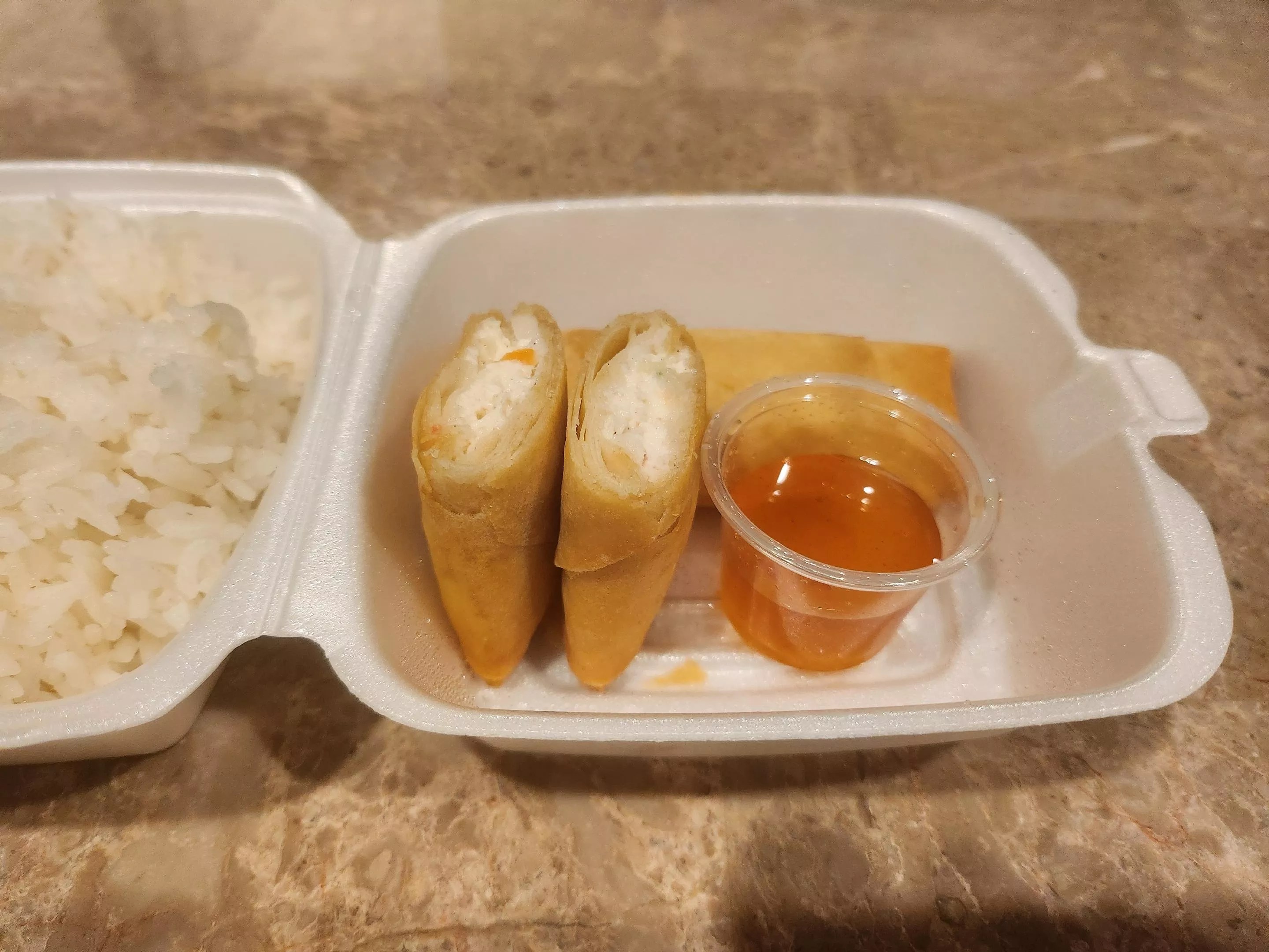 Golden-fried rolls filled with cream cheese, imitation crab meat, carrot and onion.