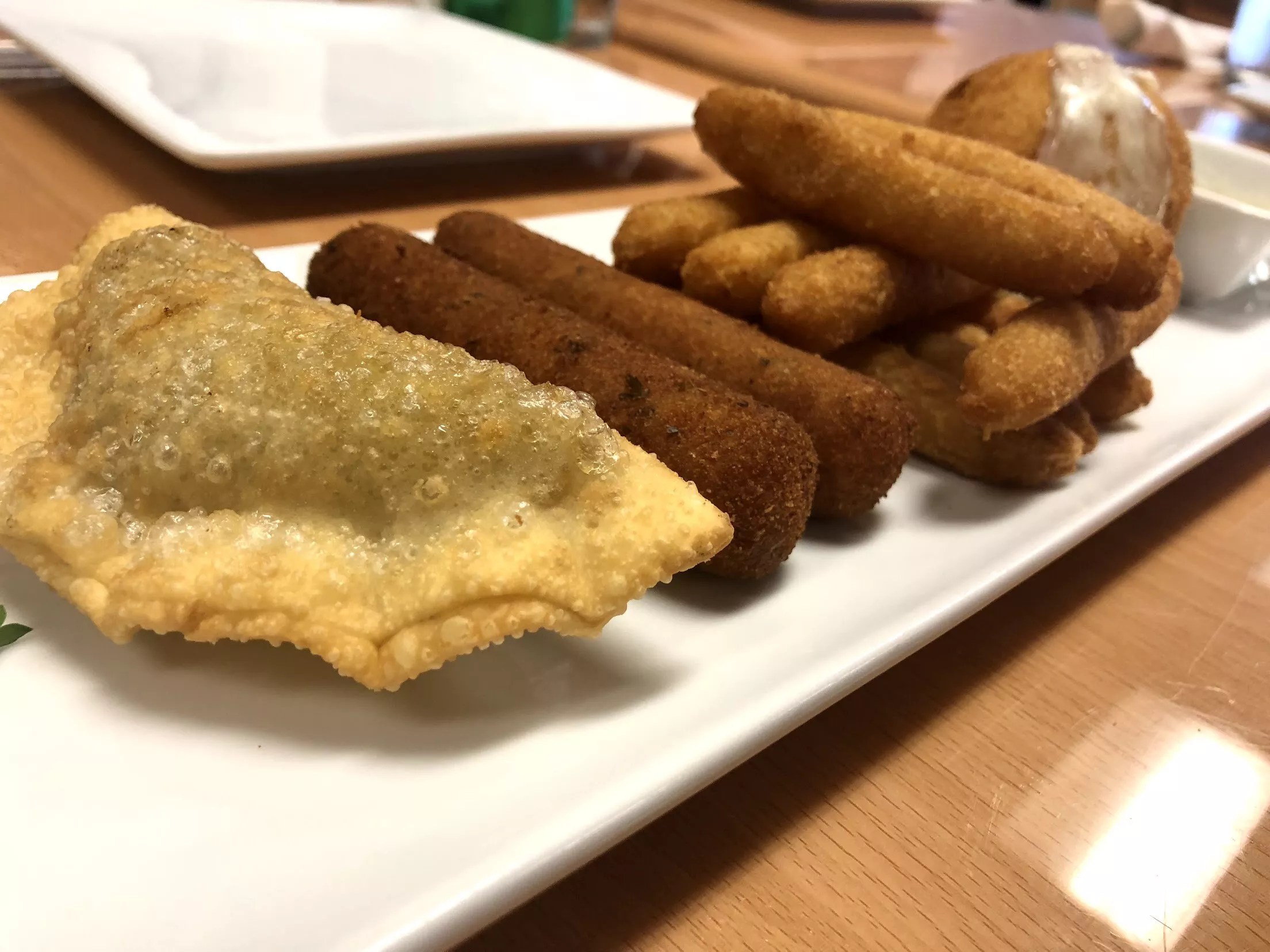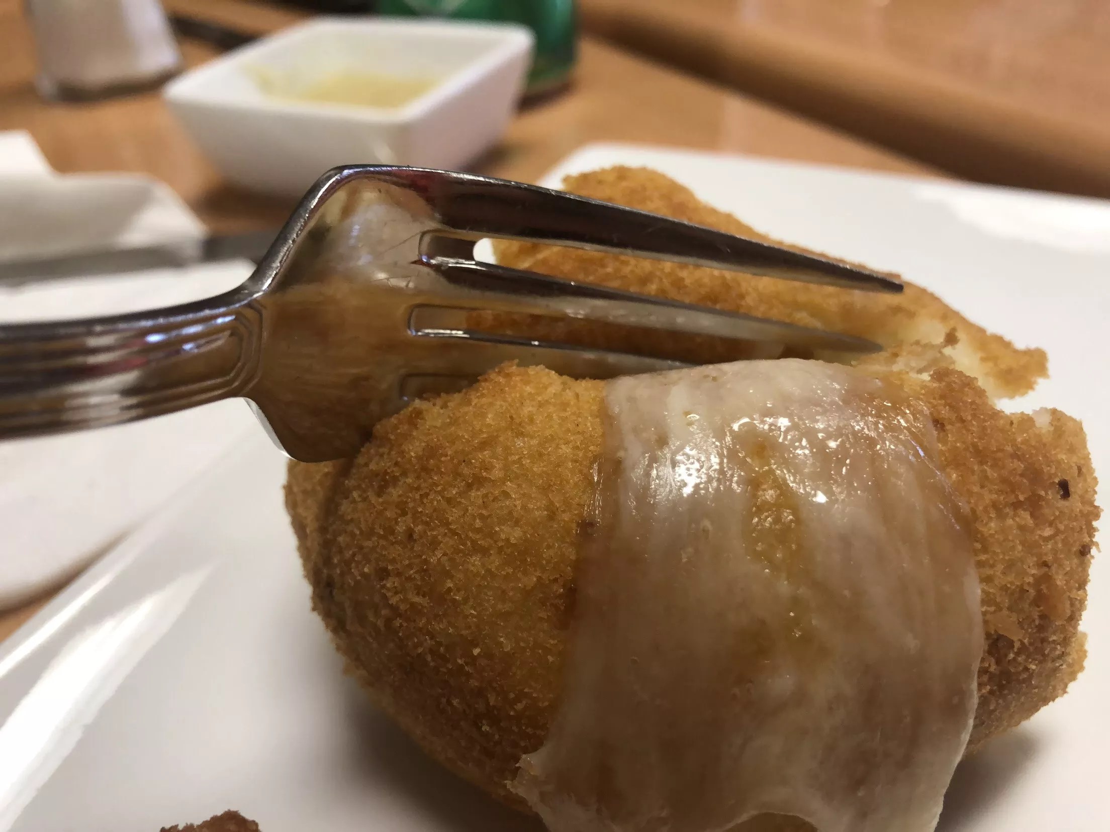 The croquettes are breaded, stuffed with cheese, mashed potatoes and ground ham. It starts with a crunch, then the inner workings of the croquette melt in your mouth like a truffle.