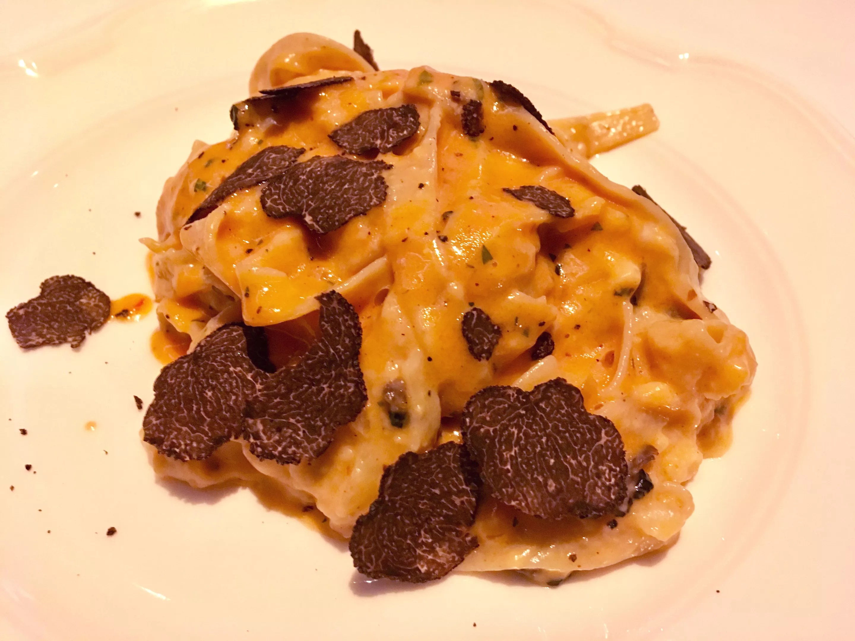 Customarily, Italians smell their truffles like sniffing a cork before eating them as a way to whet their appetites for the richness to come, and Iannuario provides the same opportunity during the presentation. The other six pastas on the menu, along with any daily special pastas, can be topped with a shaving of the truffles for an additional $30.