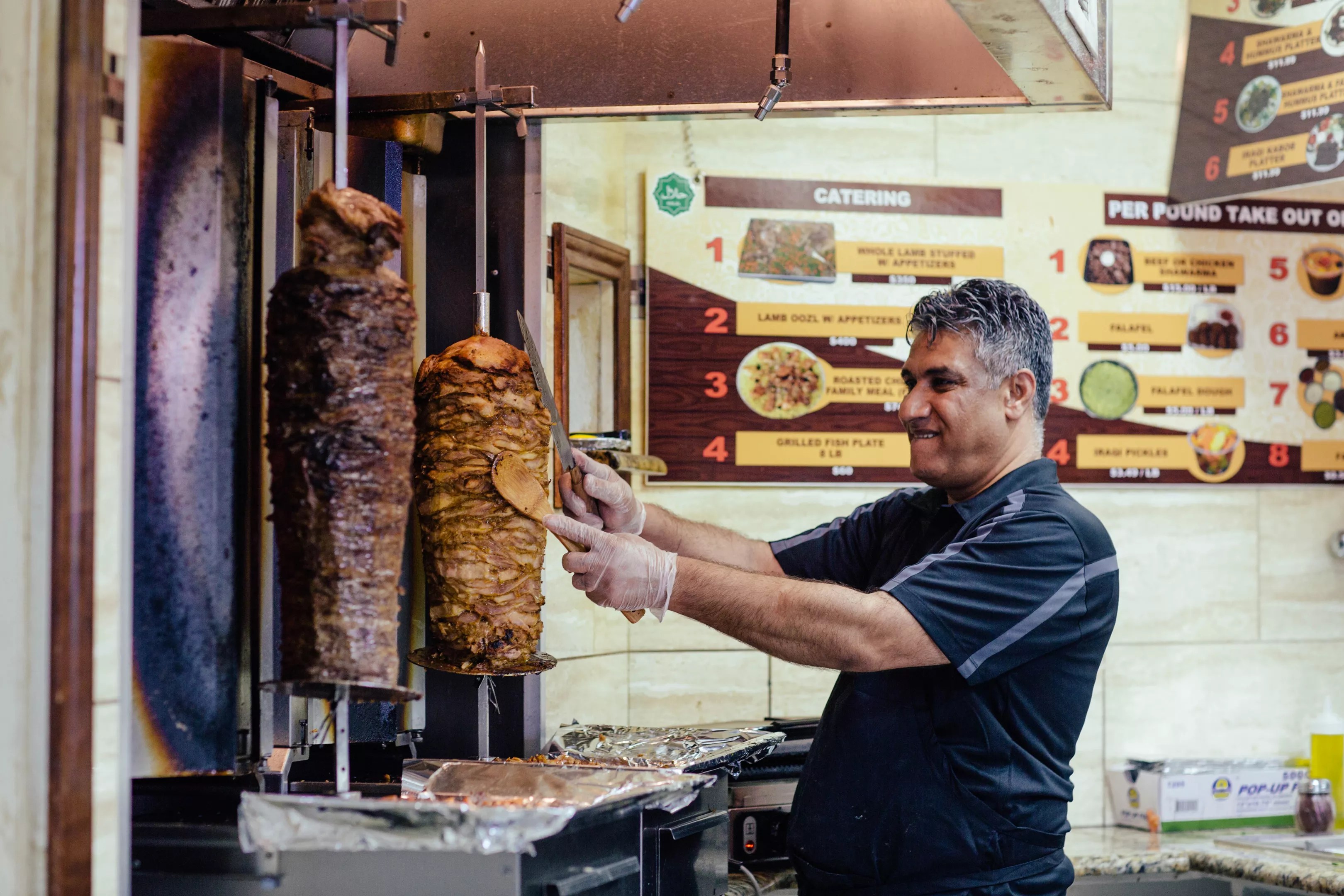 A shawarma plate is prepared at Bilad Bakery and Restaurant.