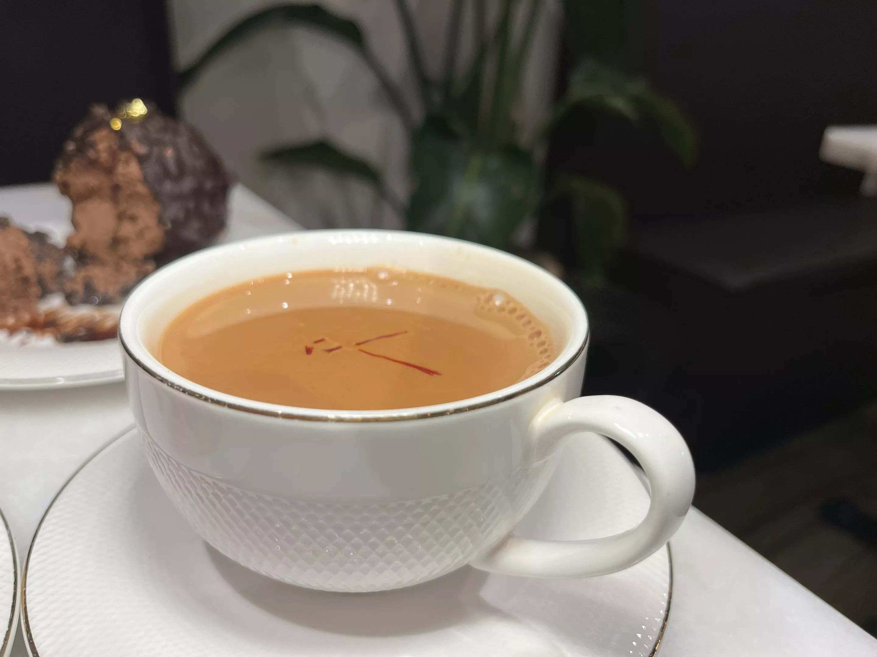 The Zafrani chai is dressed with subtle hints of fresh cardamom.