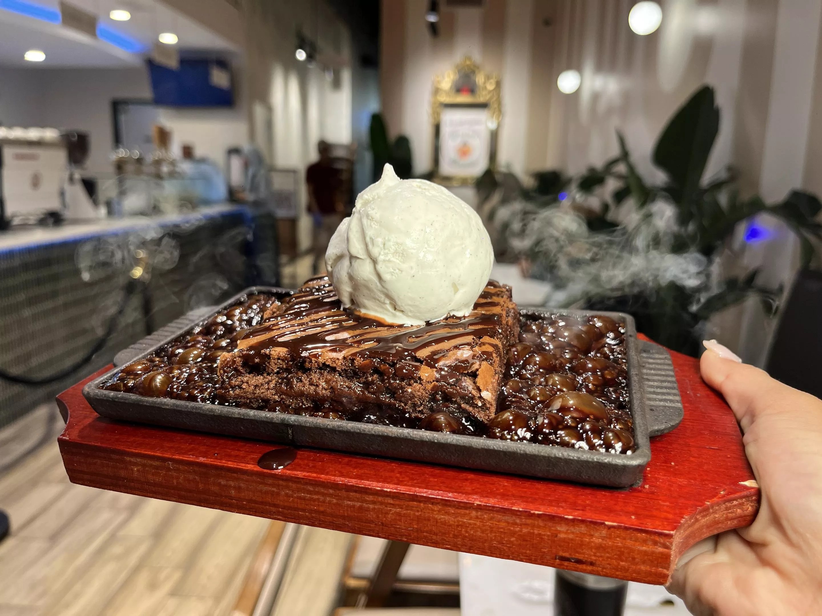 For a photogenic option, try the sizzling brownie plate on hot cast iron layered with a bubbling bed of hot chocolate syrup, a decadent brownie and a scoop of Dessert Avenue’s homemade vanilla ice cream.