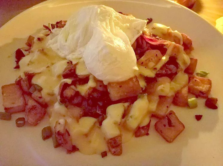 And sure, the salmon croissant was solid. But was it potatoes covered in a six-cheese sauce masquerading as a five-cheese sauce? No, it wasn’t. And when life gives you potatoes covered in a single-cheese cheese sauce, you eat them, but when life gives you a multicheese cheese sauce? You order your digestive tract to get in formation because you’re about to embrace your dairy-based destiny.
