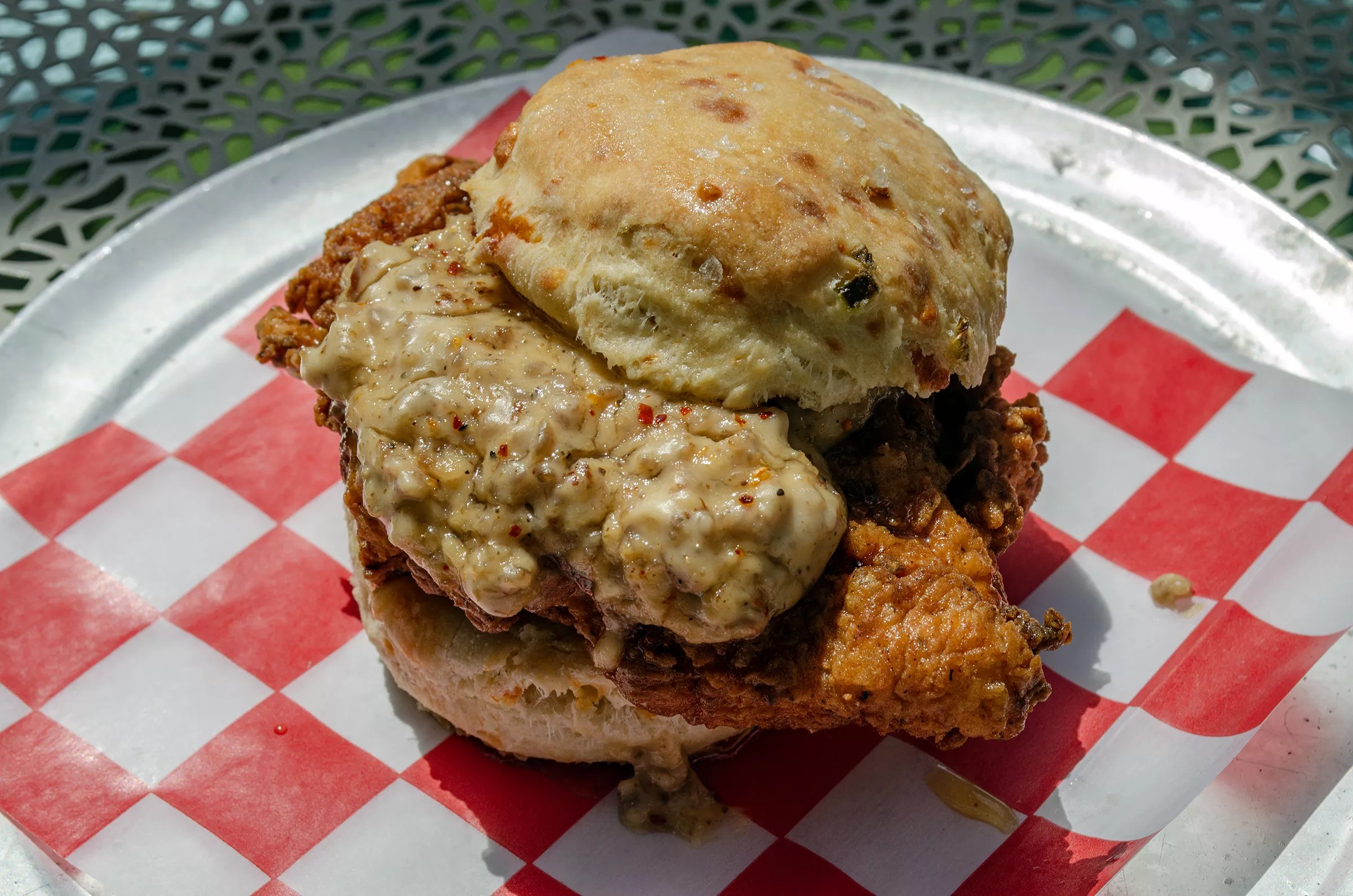 Heartier options include The Fowl Habit, a big jalapeno cheddar biscuit with fried chicken breast, sausage cream gravy and hot glitter honey. There’s a chilaquiles and avocado toast as well.