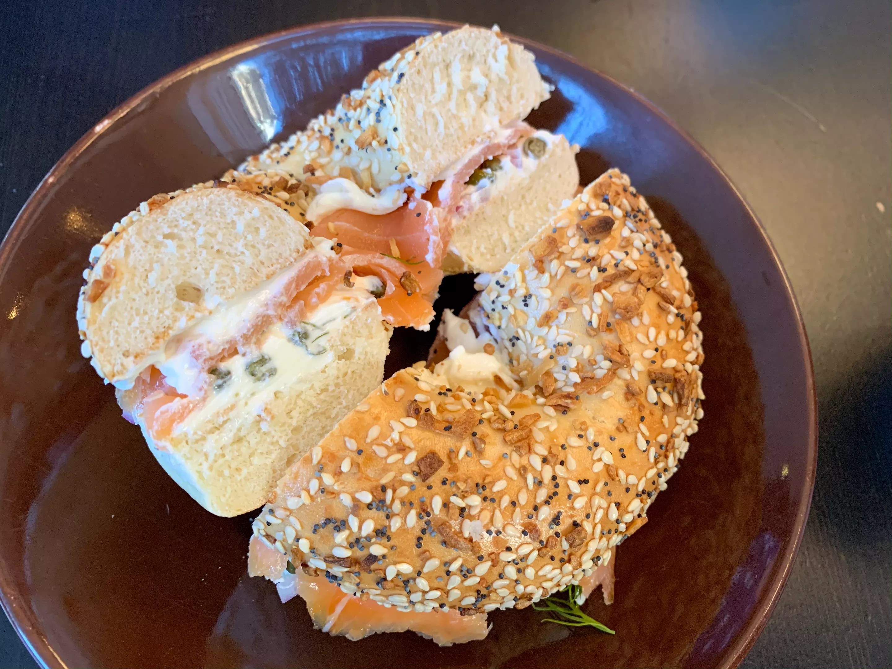 Salmon, cream cheese, dill and capers on an everything bagel (.50)