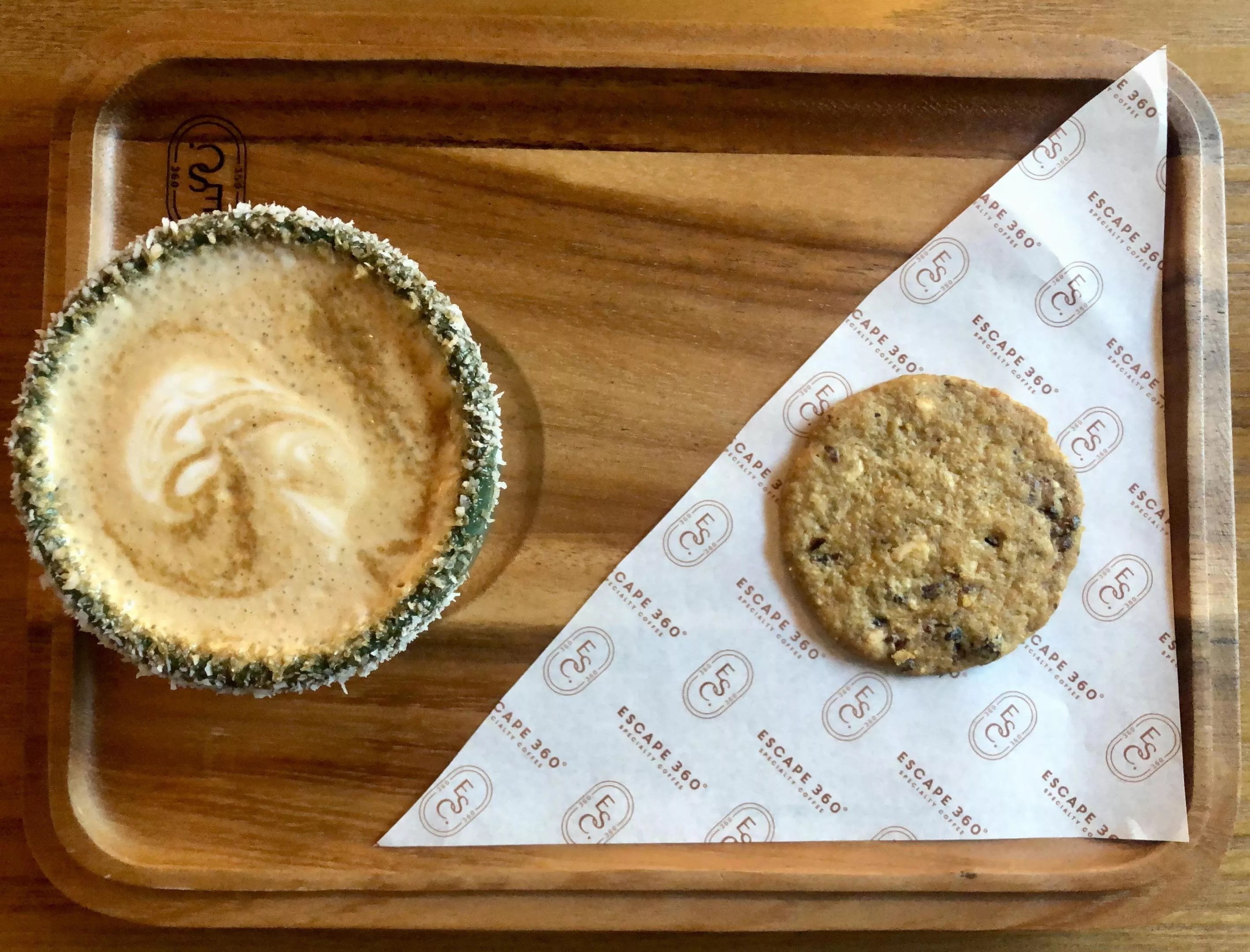 The Thai coconut brown sugar latte our party fought over a little bit, served alongside a surprise oatmeal raisin cashew cookie.